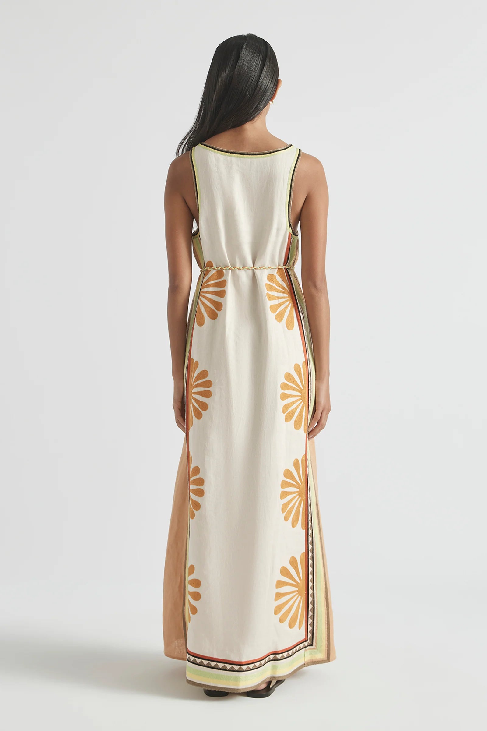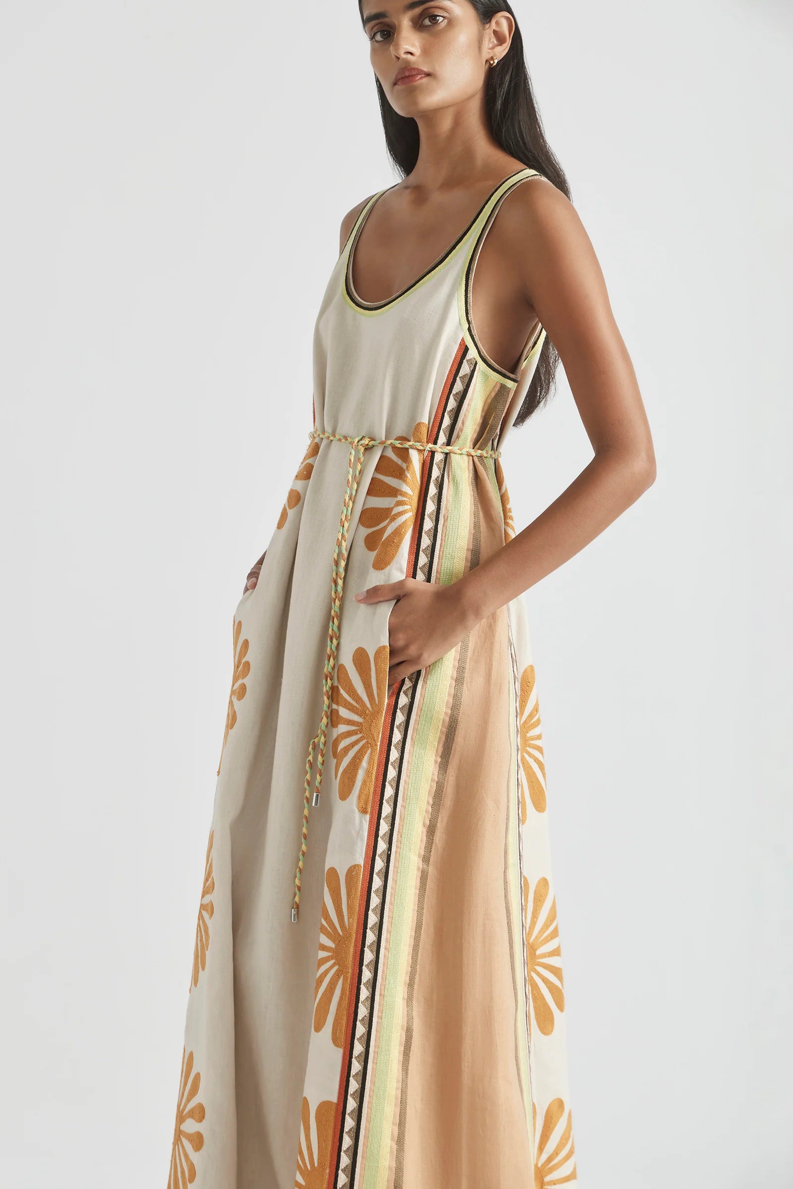 The Deja Vu Scoop Neck Gown combines artful design and comfort with its original in-house applique embroidery. Hand-drawn by our founder, the artwork is developed into intricate embroidery. Crafted from soft linen with a cotton lining, it features side seam pockets and custom applique detailing. Perfect for garden parties or casual evenings out, pair it with simple heels or sandals for an effortlessly chic look.