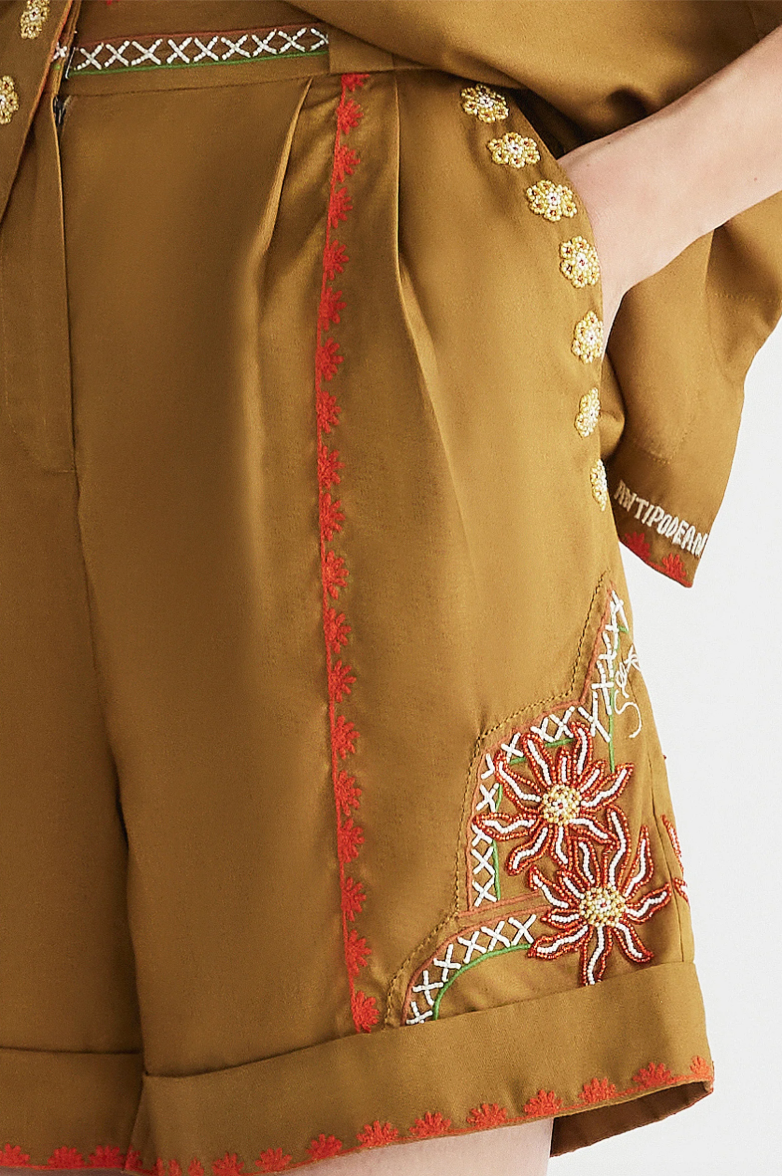 The Flower Seeker Amber Tuck Short embodies Antipodean’s principles of style, comfort and artful detail. Crafted from luxurious Tencel, each pair is adorned with original in-house placement embroidery and hand-beaded motifs exclusive to Antipodean. These mid-length shorts feature angled pockets and a fly front with an internal hook and bar and jigger closure. Elevate your wardrobe with this chic and versatile piece.