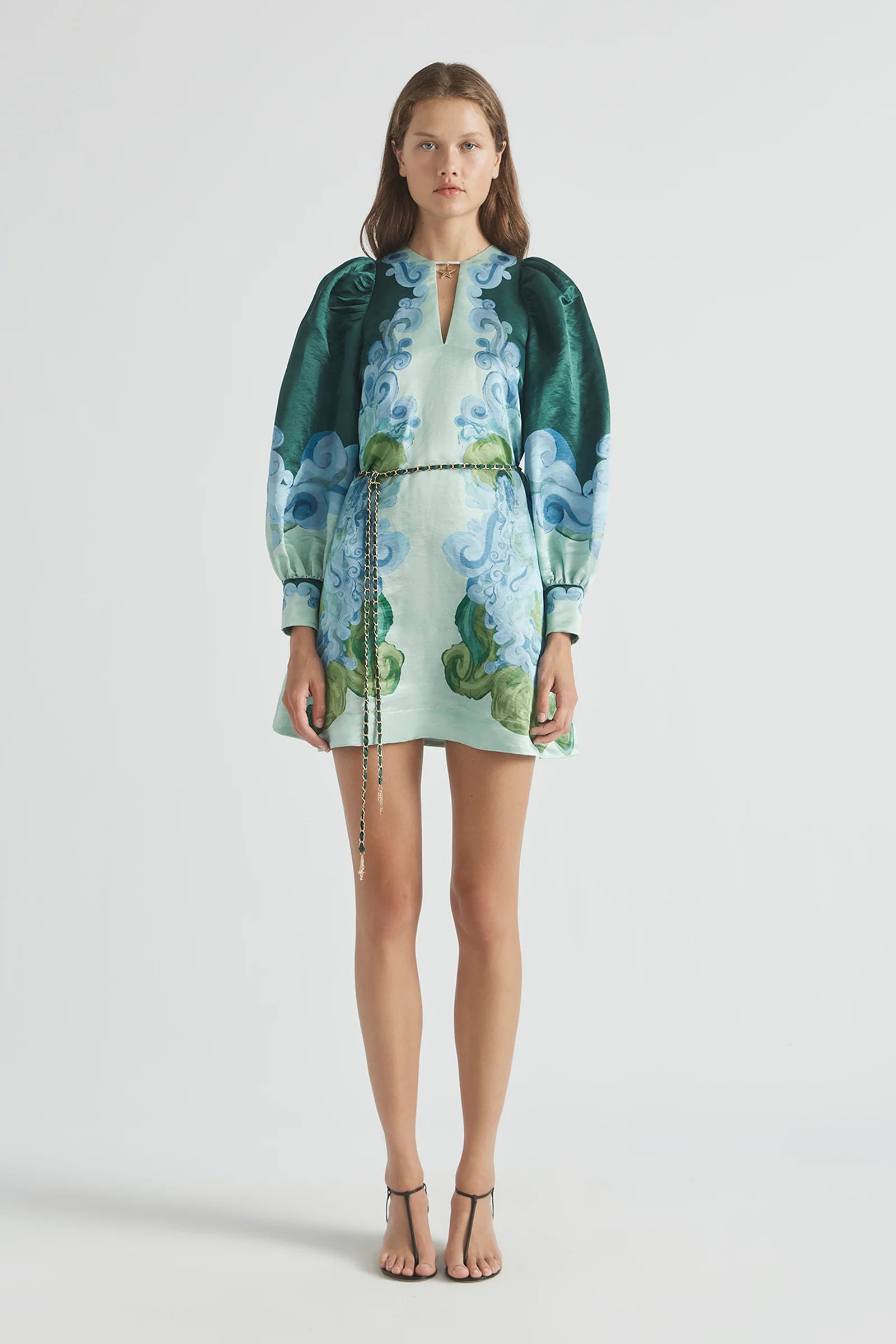 The Runaway Billow Shift Dress exudes effortless elegance with its voluminous silk linen satin fabric, adorned with an exclusive in-house print hand-drawn by our founder. Featuring billowing sleeves and a cocoon fit, it’s designed with a star charm detail and matching silk waist tie for a chic touch. Perfect for dinner parties or special events, pair it with heels for a sophisticated look or dress it down with flats for daytime ease.