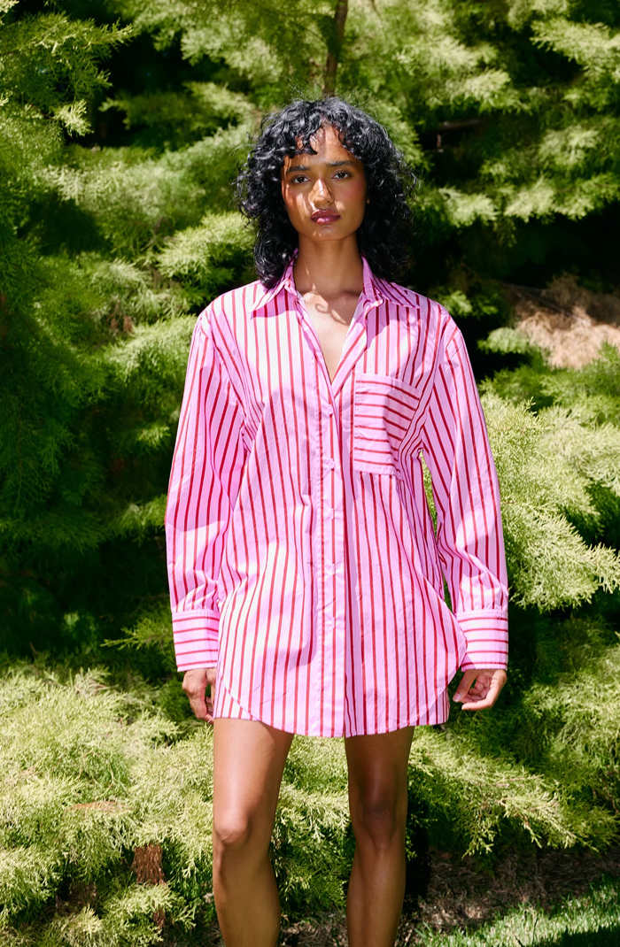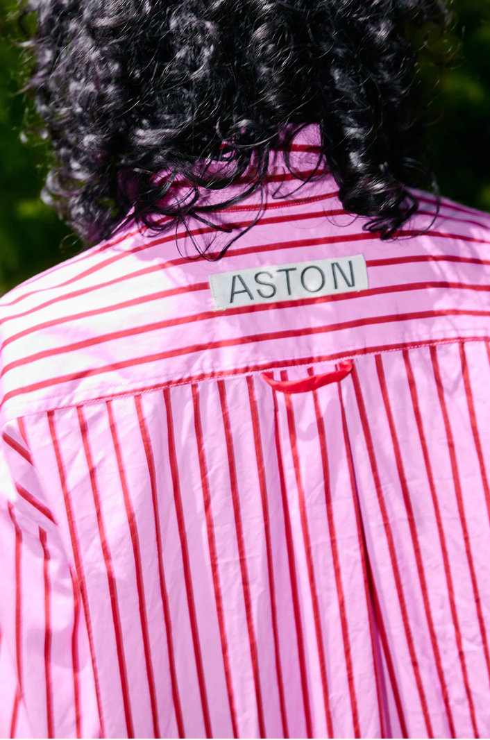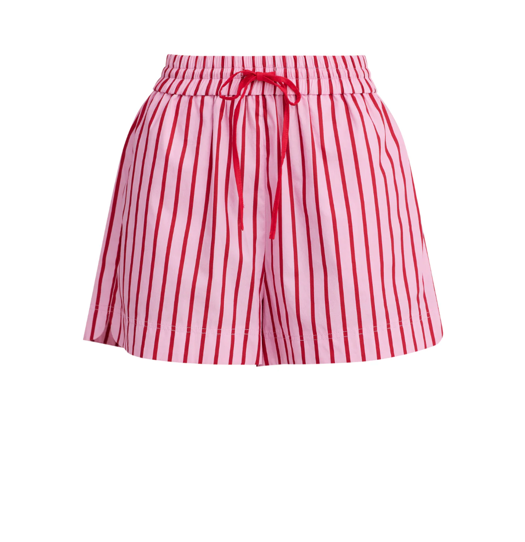 Introducing Aston Studio's Harvey Short in Arctic Stripe, a cotton poplin short in an Arctic blue stripe pattern. Features an elasticised waist with a tie detail and a curved wide stitched hem detail. Perfect for hot summer days.