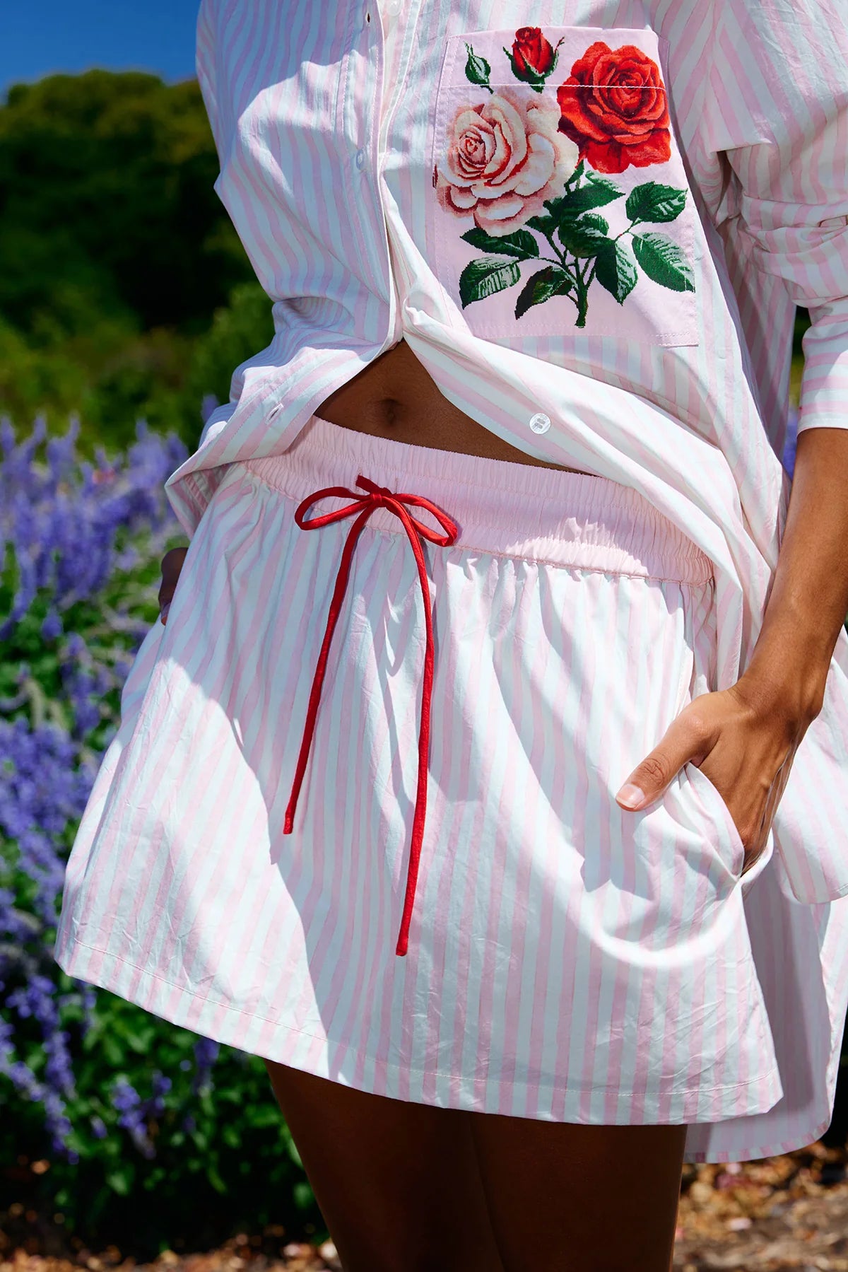 The Indi Skirt is a relaxed mini skirt in a fresh Baby Stripe print. Casual and preppy, the Indi can be paired back with the matching Buddy Shirt for a coordinated, chic set.