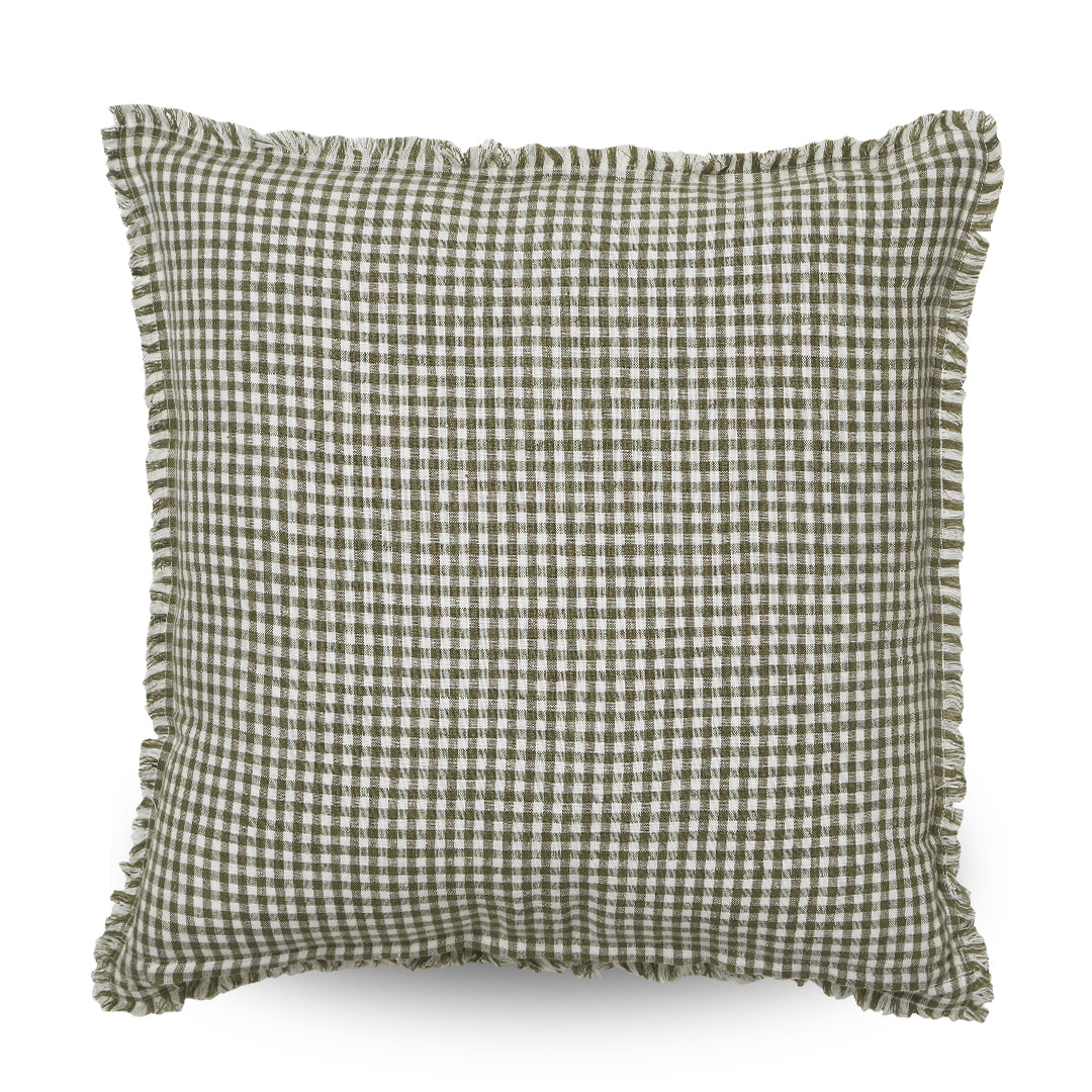 The Heath Gingham Cushion Cover boasts an all-over gingham check in basil green and white with a self-fringed detail.