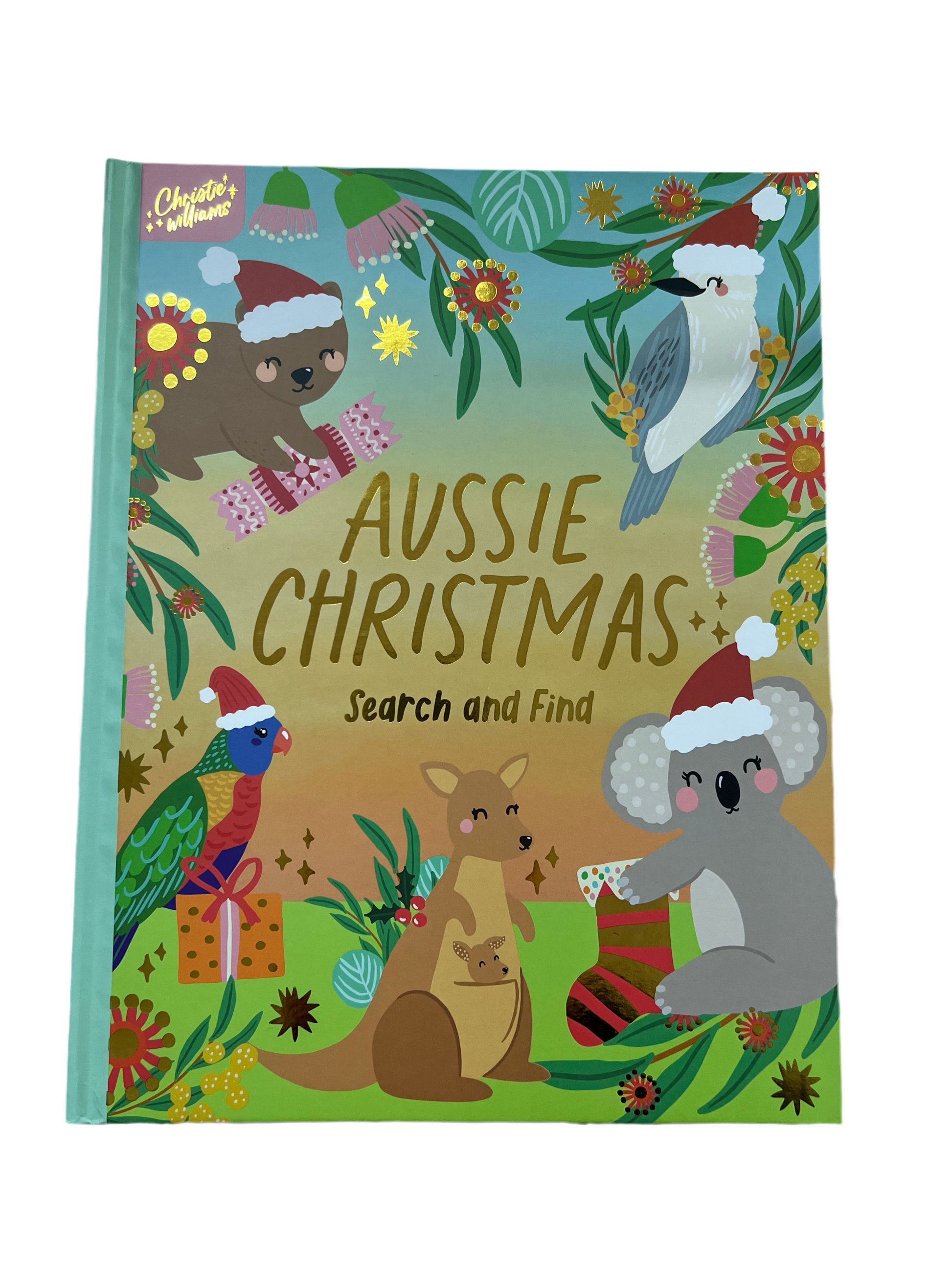 Explore the holiday season Down Under! This search and find book is filled with vibrant illustrations of unique Australian animals with a festive twist. Readers are challenged to find echidnas, galahs, wombats and more within the colourful scenes. It’s Aussie Christmas fun!