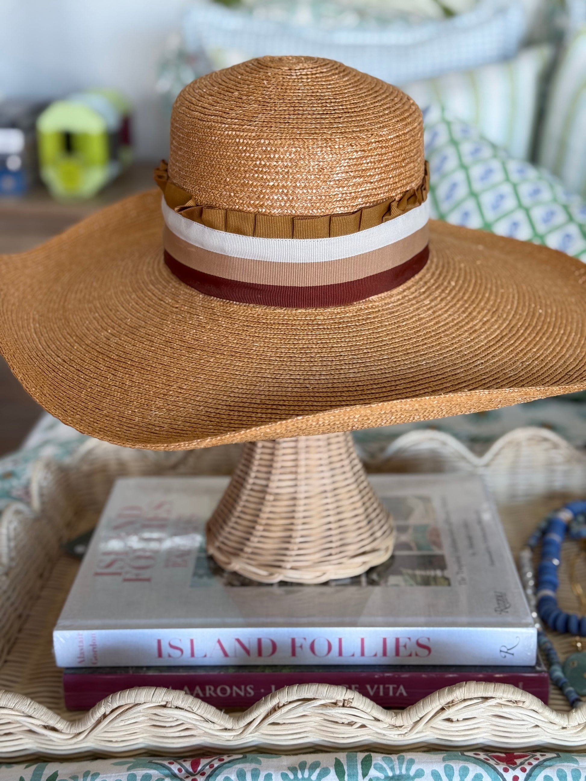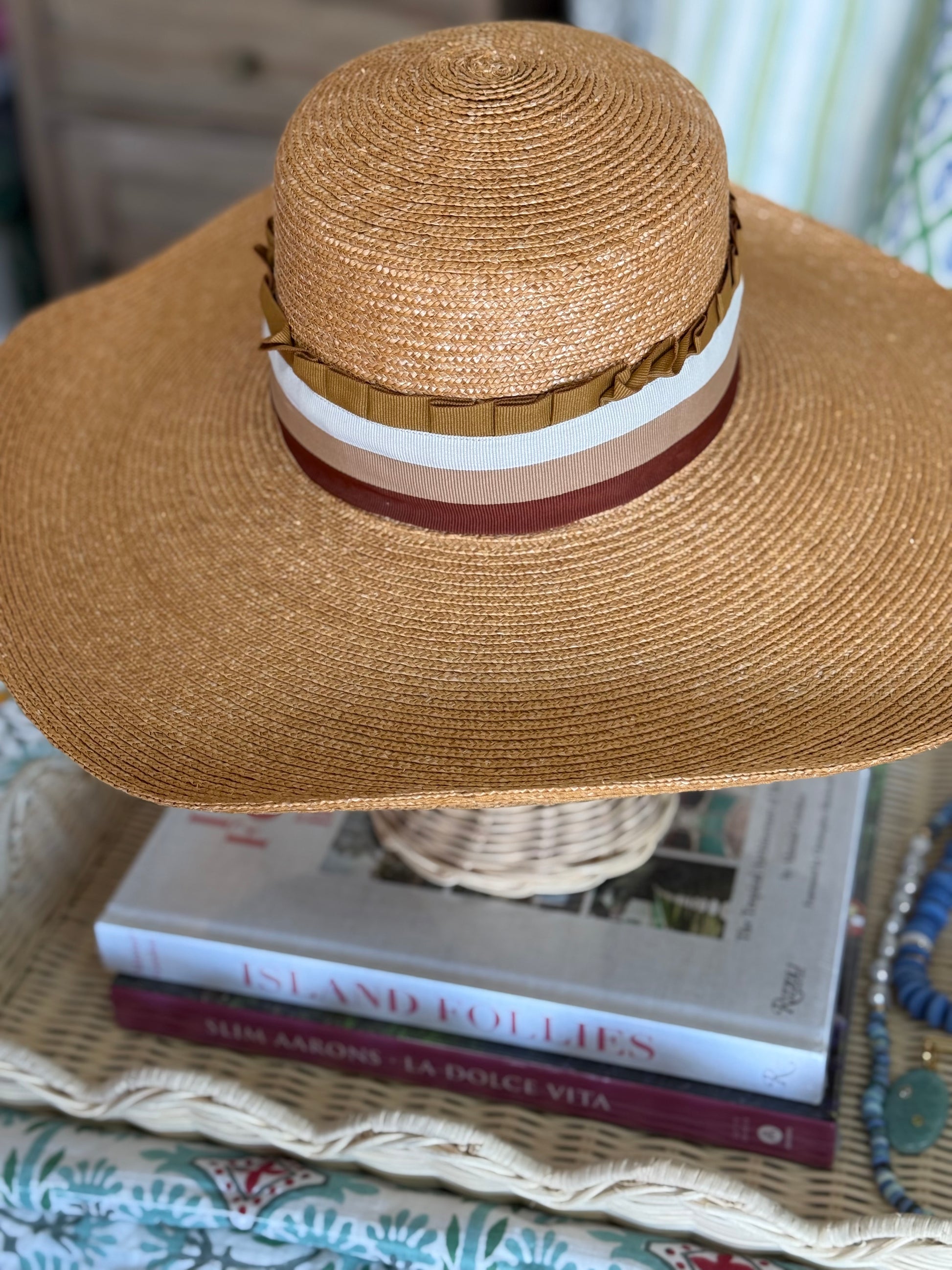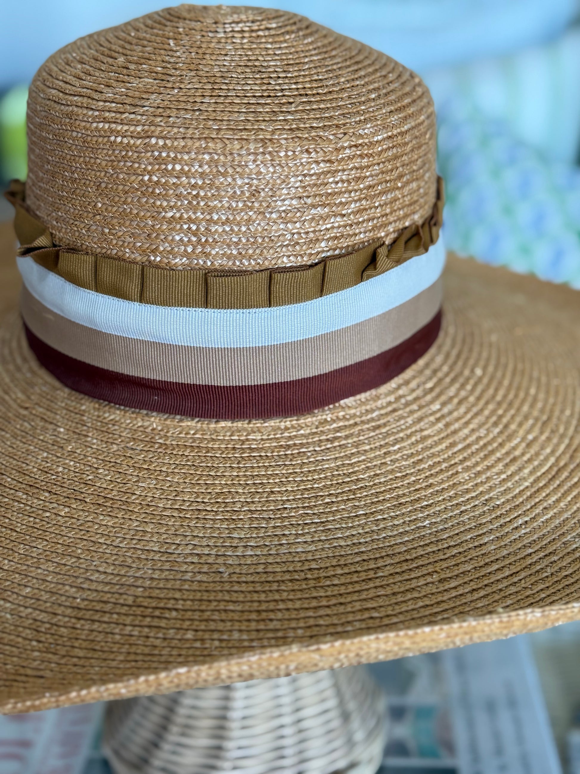 Materials: Fine quality straw, fully lined, Italian grosgrain (interior & exterior) band