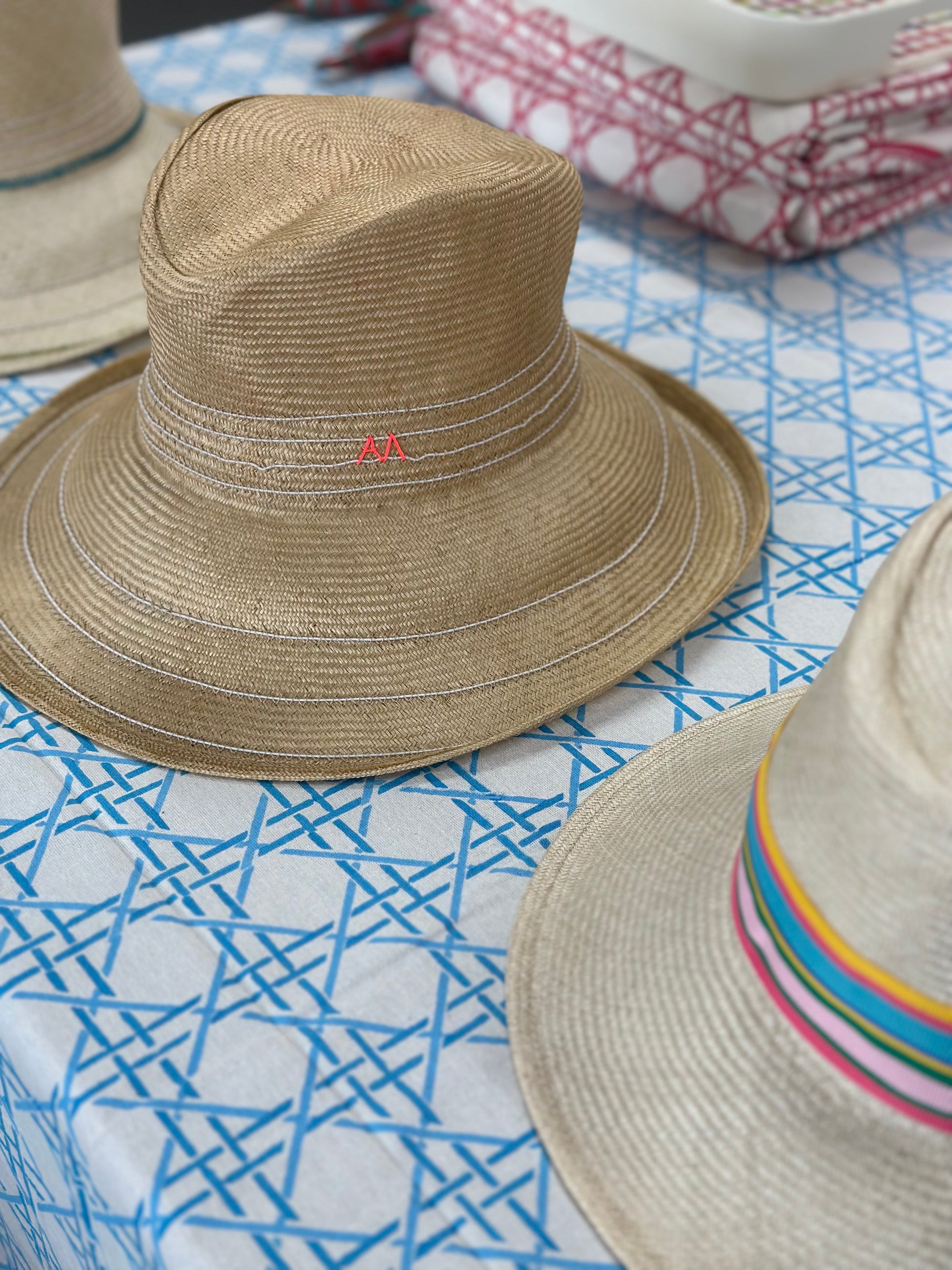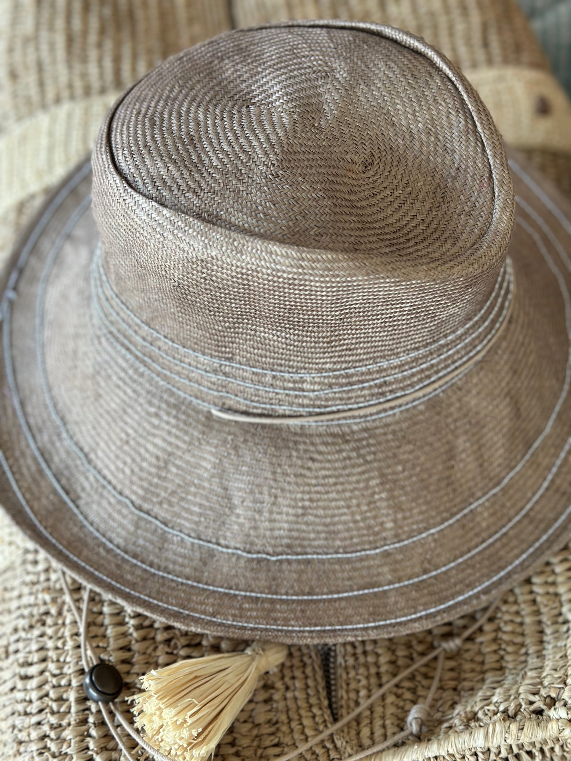 Materials: Fine quality ramie straw - can be squashed for travel and packed with rolled clothing in the crown.