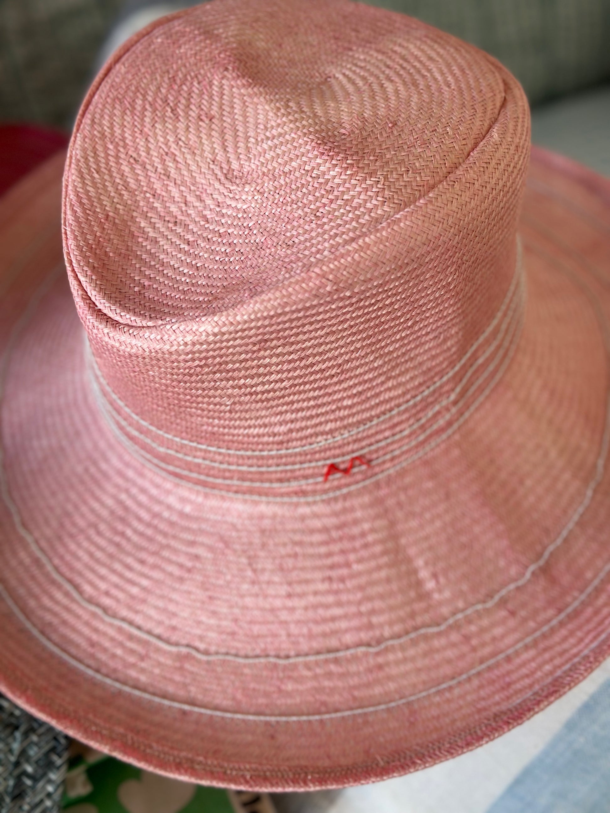 The travel hat dyed in a blush pink. Fitting : the elasticated crown fits most headsizes