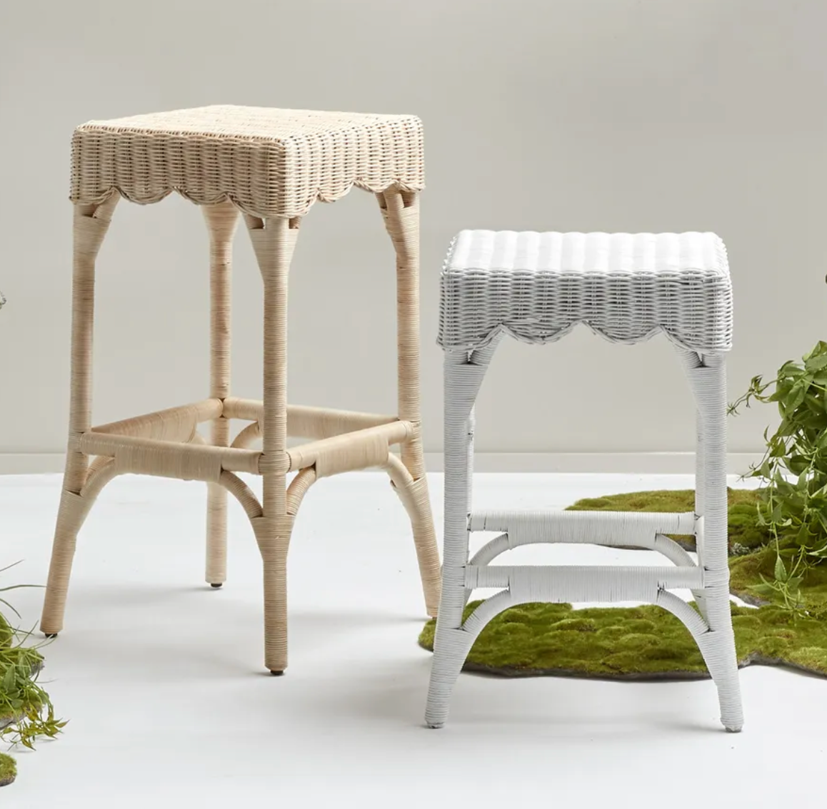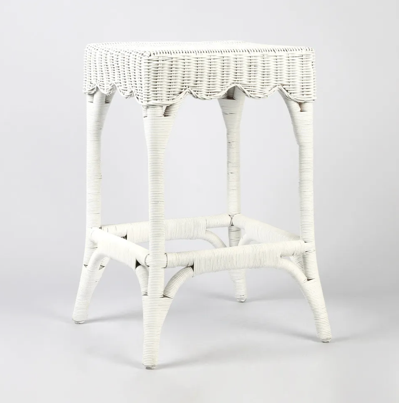 Masterfully hand woven & wrapped in natural wicker, our Belle rattan counter stool is sturdy & strong. With a generous seat & pretty scallop skirt, this comfortable & lightweight stool is perfect for your kitchen counter & indoor living.