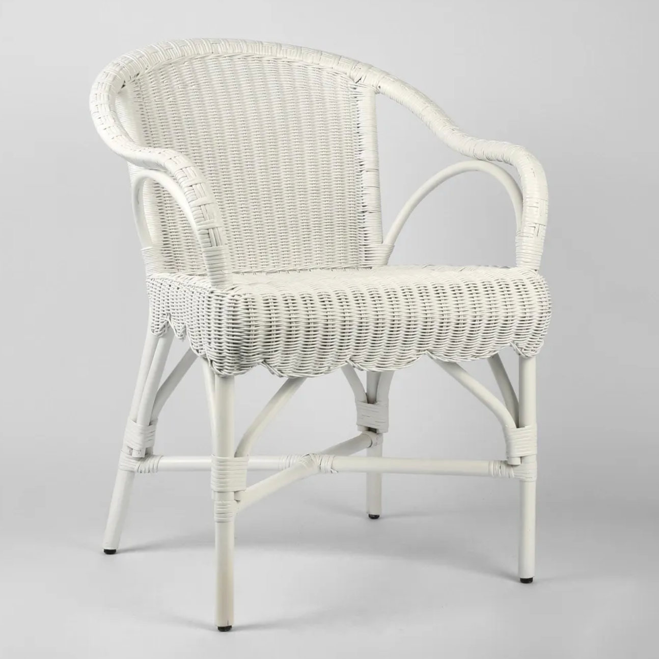 Inspired by 1920's French chairs, our Belle rattan armchair with scallop-edge detail is carefully woven by our skilled weavers in natural wicker. This classic armchair is to be used indoors only.