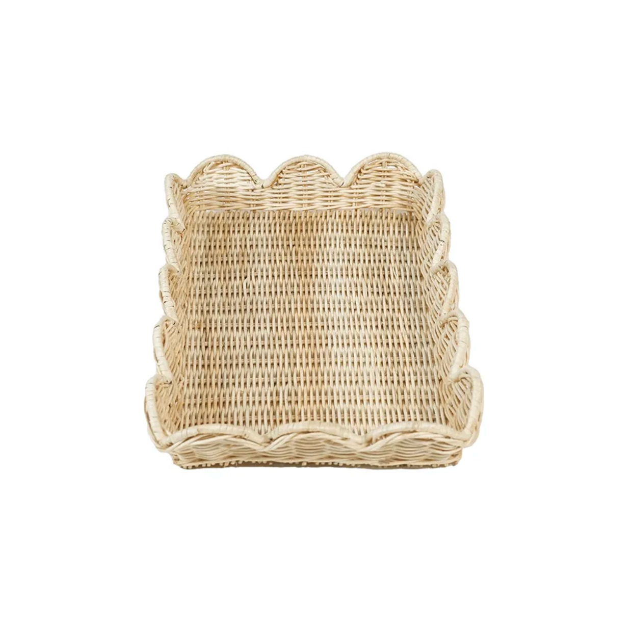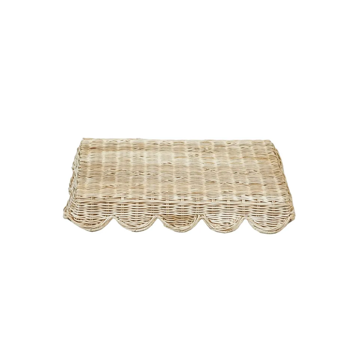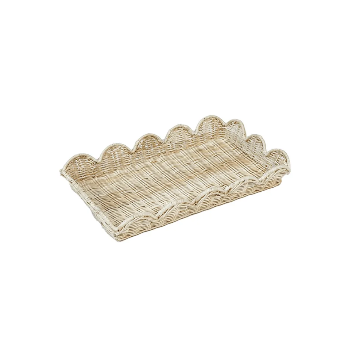 Delight your guests with our lovingly hand woven wicker with scallop-edged detail. Serve your favourite drinks & nibbles or use it to store your keys, wallet or phones.