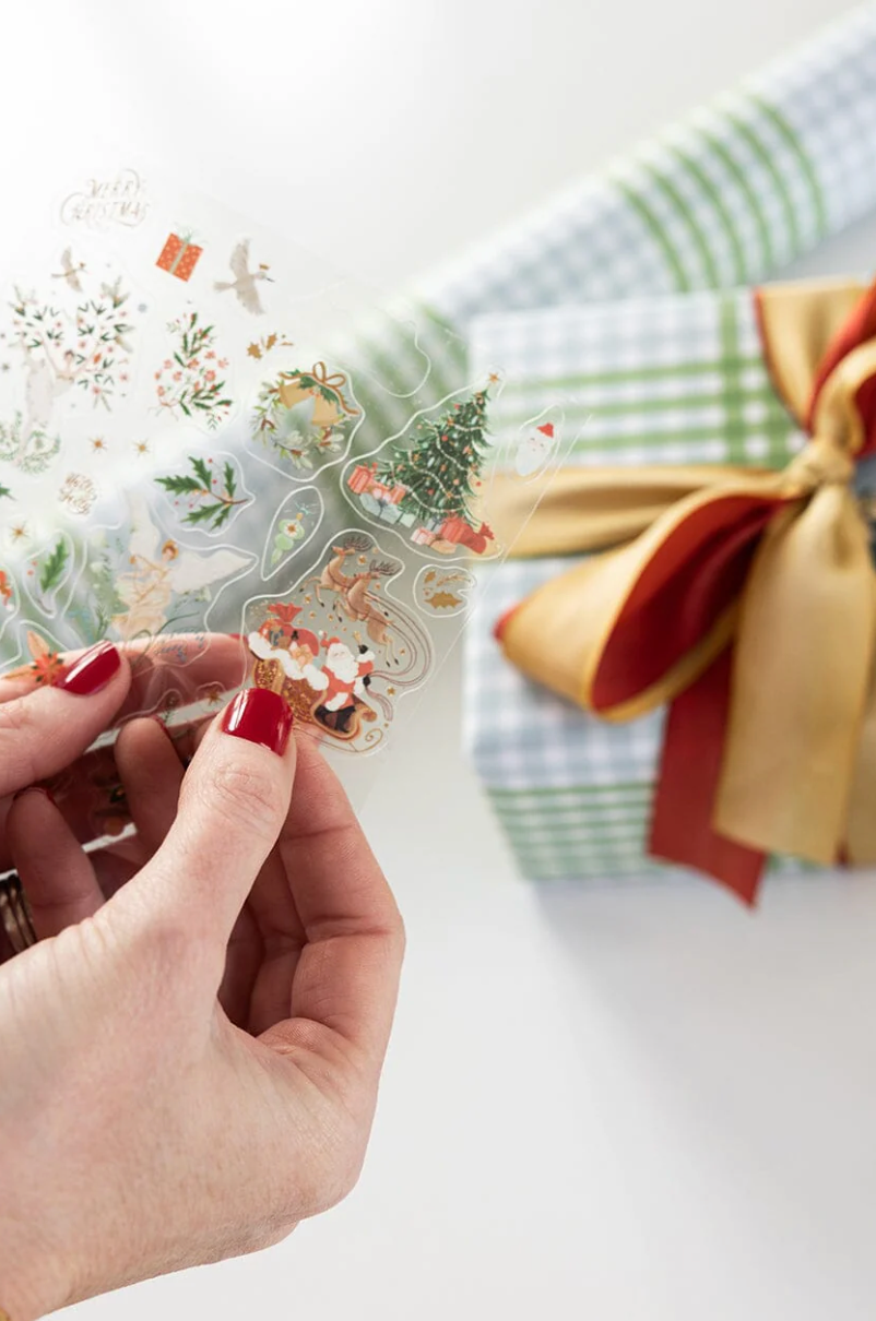 "An Enchanted Christmas" gold foil accented sticker sheets are designed to bring festive charm and joy to your holiday celebrations. Whether you're decorating gift wrap, sending heartfelt cards, or adding holiday cheer to your journal, these stickers add a touch of elegance and warmth to every detail.