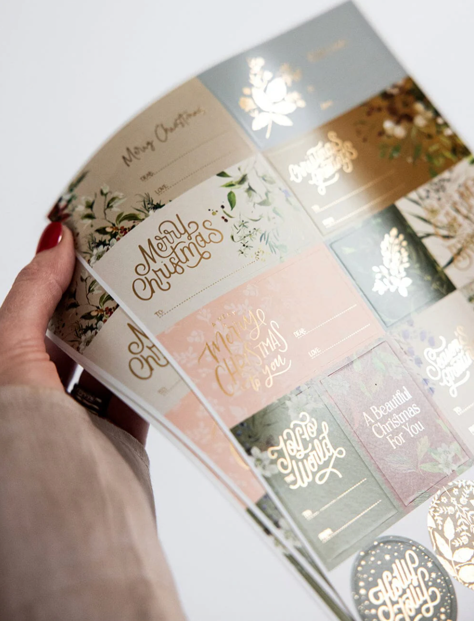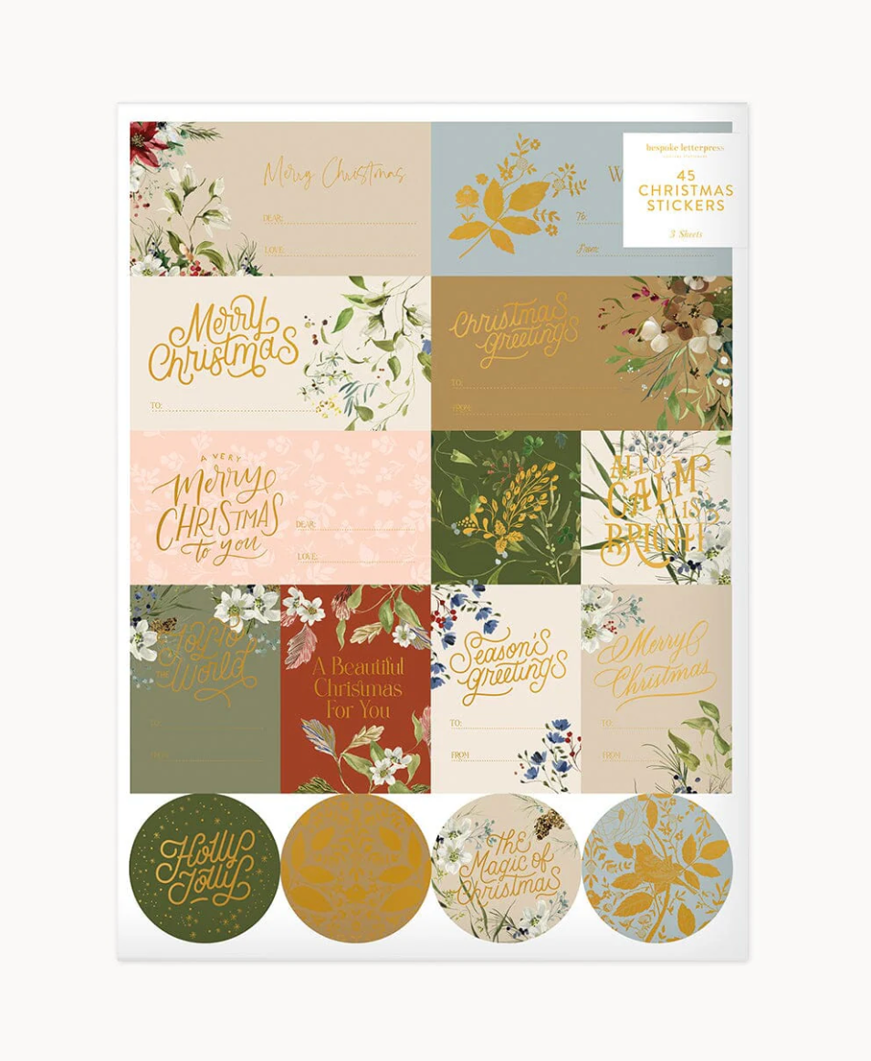 45 Stickers across 3 sticker sheets with gold foil. Illustrated by Sherry Lou Studio.