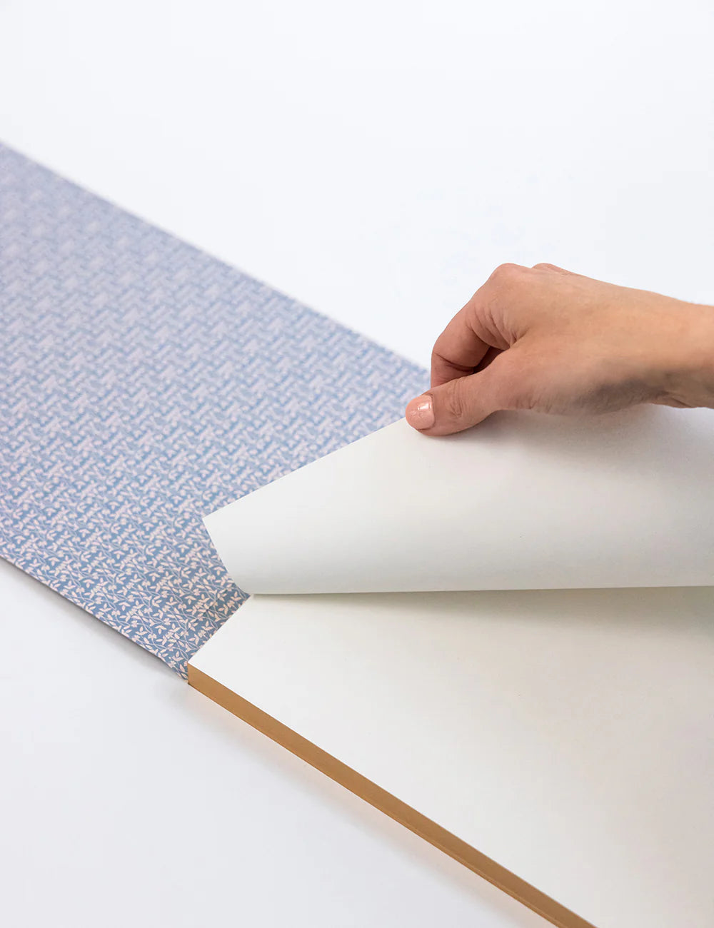 Featuring 100 heavyweight tear off blank pages. Bound with a gummed edge, and full heavyweight wrap around cover. Removable Gold Foil printed Bellyband and gold foil and gilded edges.
