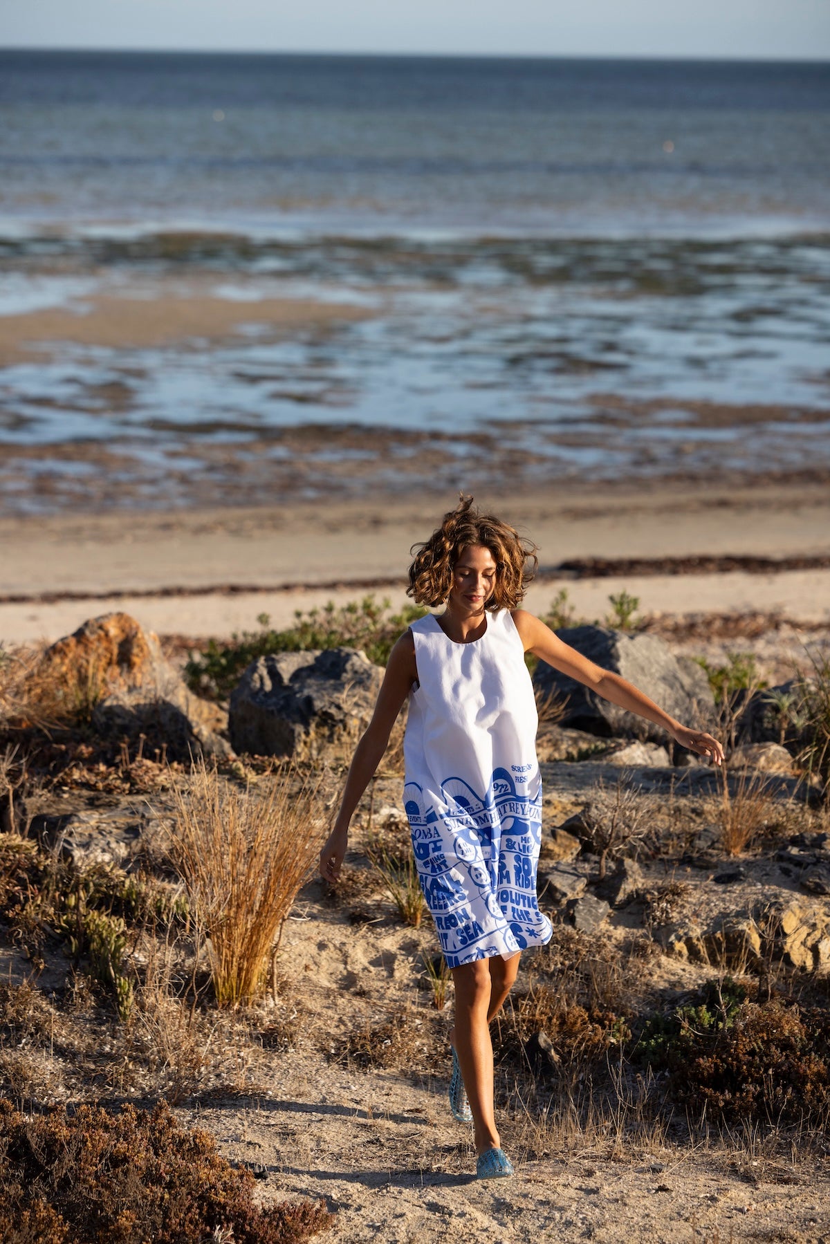 Our favourite cotton poplin dress with a relaxed tee–shift shape. Inspired by Binny's salty summer holidays in Yamba. Throw on with slides and let the bright cobalt hem do all the talking. True to size.