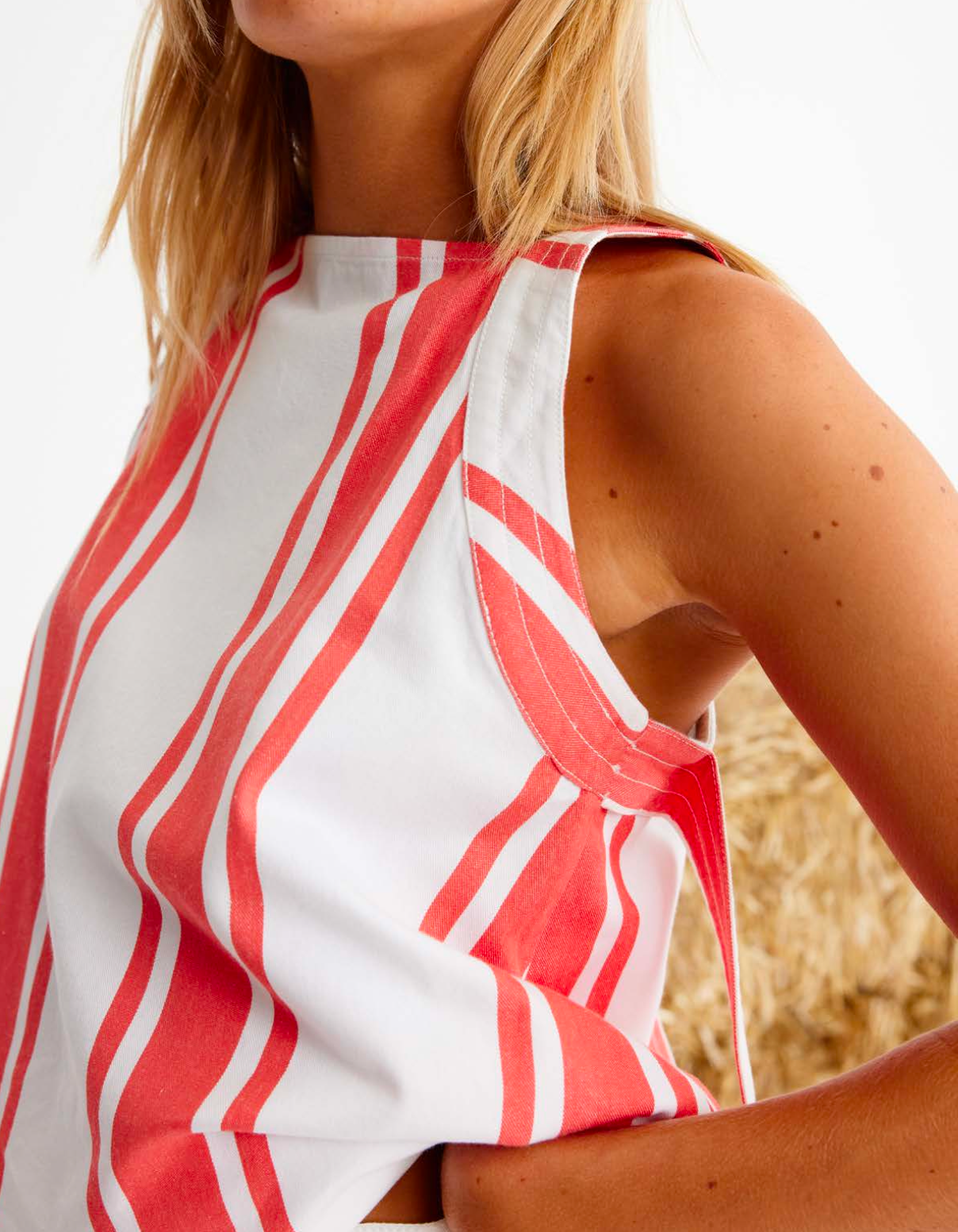 This ain't Texas. The Colt pants are your ticket to stride. Tailored in soft red cotton twill with a flattering flat front and elastic back waistband, they’re all about easy nonchalant elegance. Side pockets for all the essentials, and a wide leg that says giddy-up and go. Pair with white shirt, t shirt, the filly top, ready to ride off into the sunset.