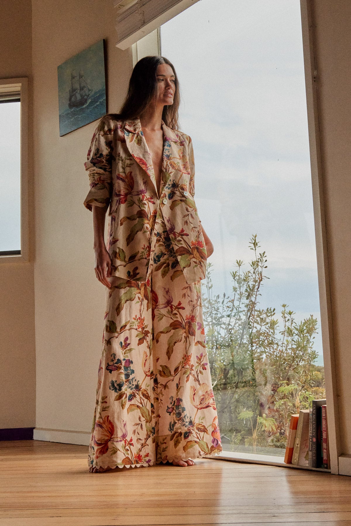 We love the coast & the country. Am sure you have worked that out by now. Nothing better than a road trip discovering & tracking down iconic destinations & Loch Ard Gorge is one for the bucket list. A view to take your breath away. Softest rich reds & natural tones set against a striking backdrop (you.) Our namesake cotton linen blazer is soft-structured with a relaxed double-breasted silhouette and subtle ric rac detailing. The contrast lining is a little secret between you both. Match with our Point Addis pant & a lace trimmed camisole or high neck knit or simply a white shirt over your favourite calico coloured denim.