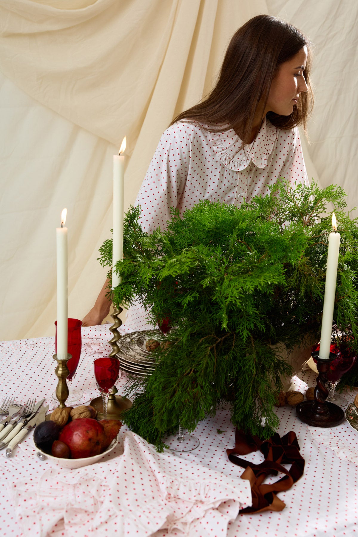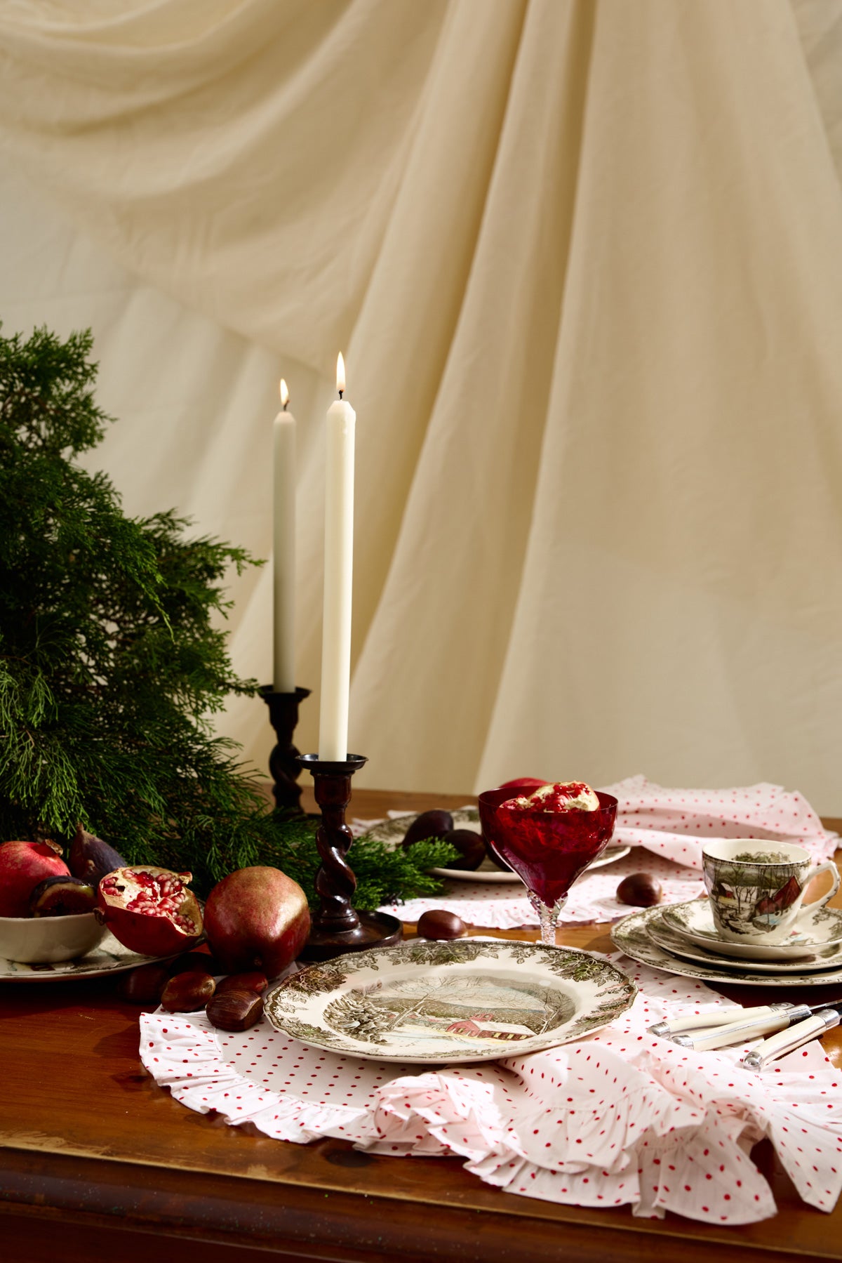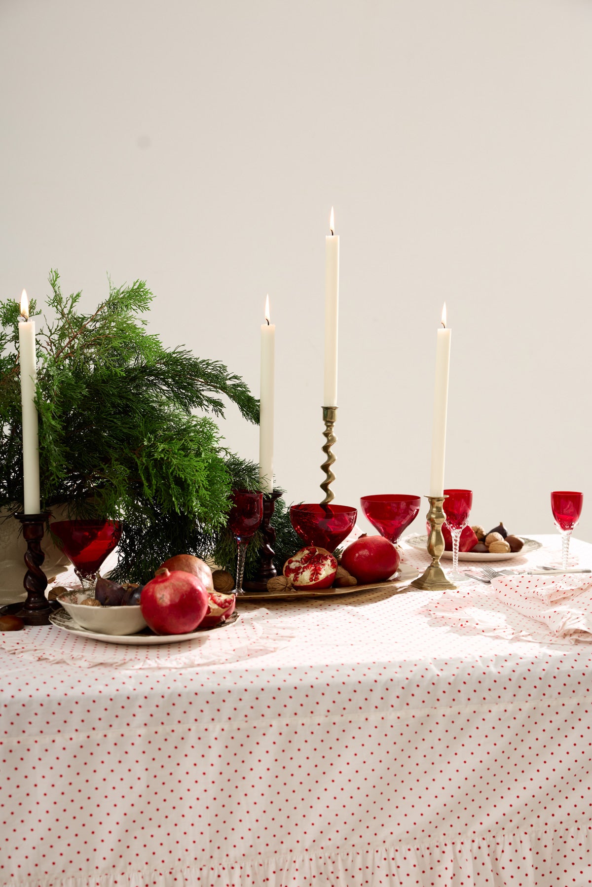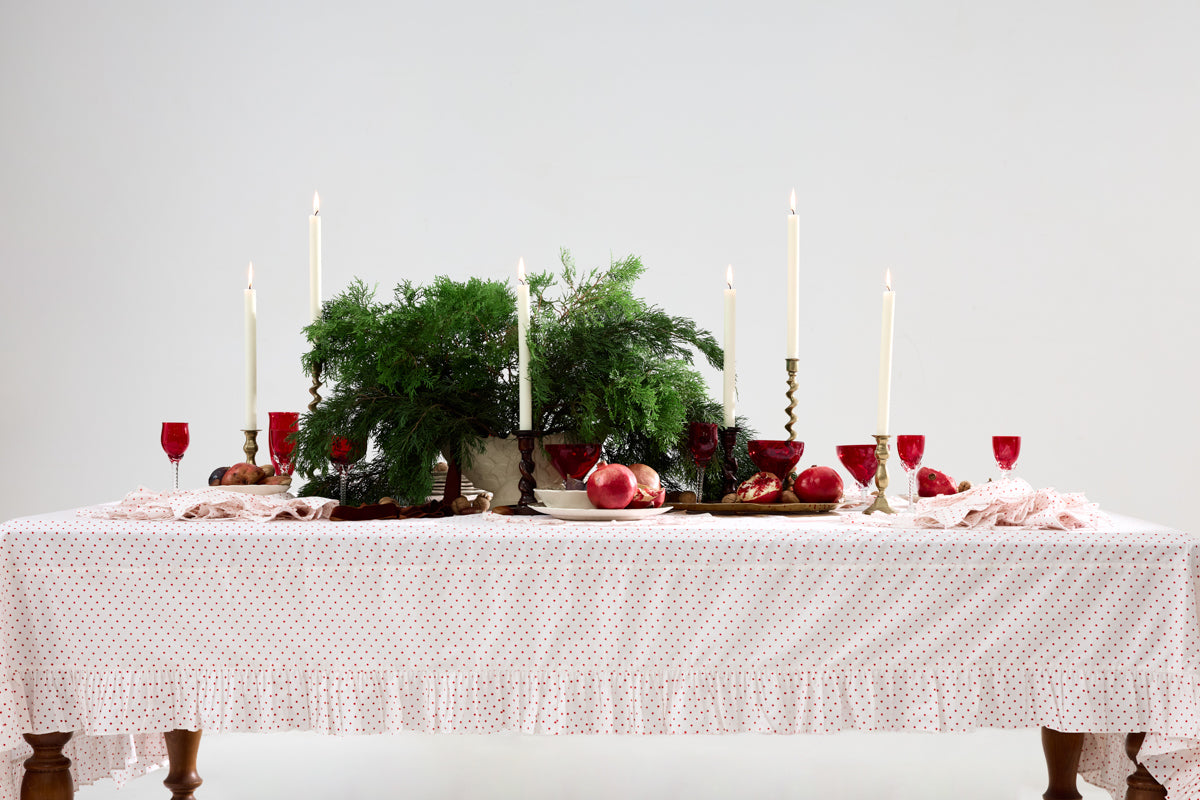 Festive and Fun! Timeless red polka dot. Soft cotton and ready to set your best table.