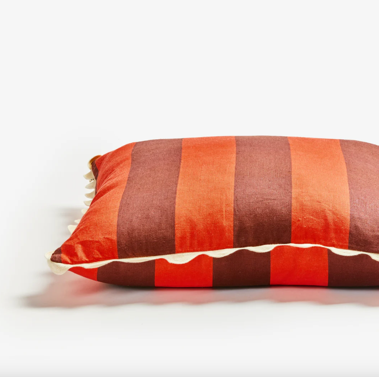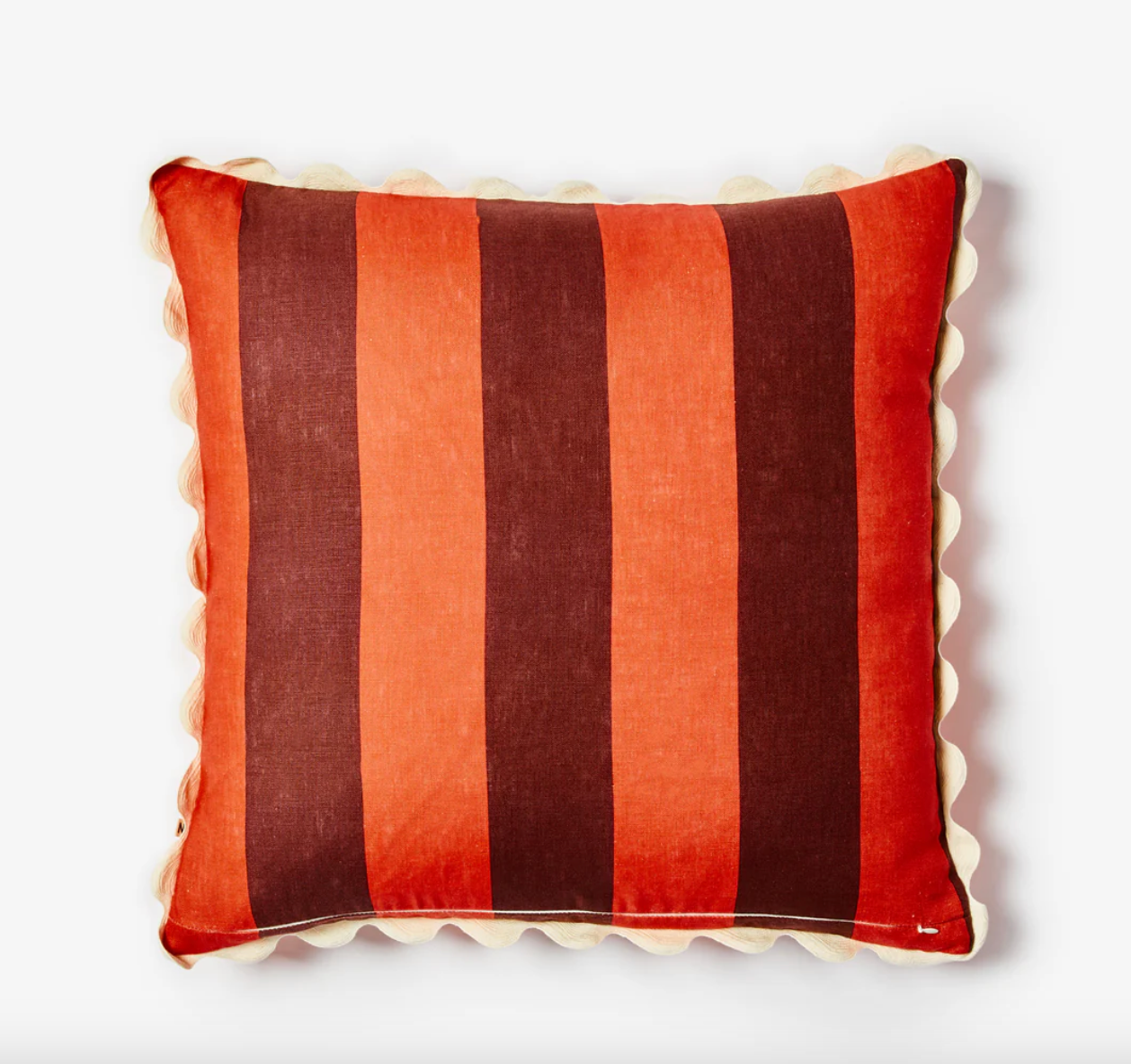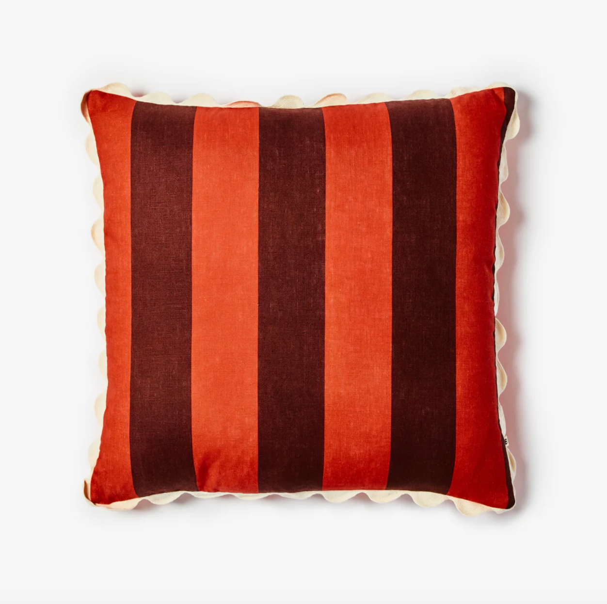 Taking inspiration from carefree summer days and retro aesthetics, our Big Stripe Burgundy Cushion blends these influences in a playful way.