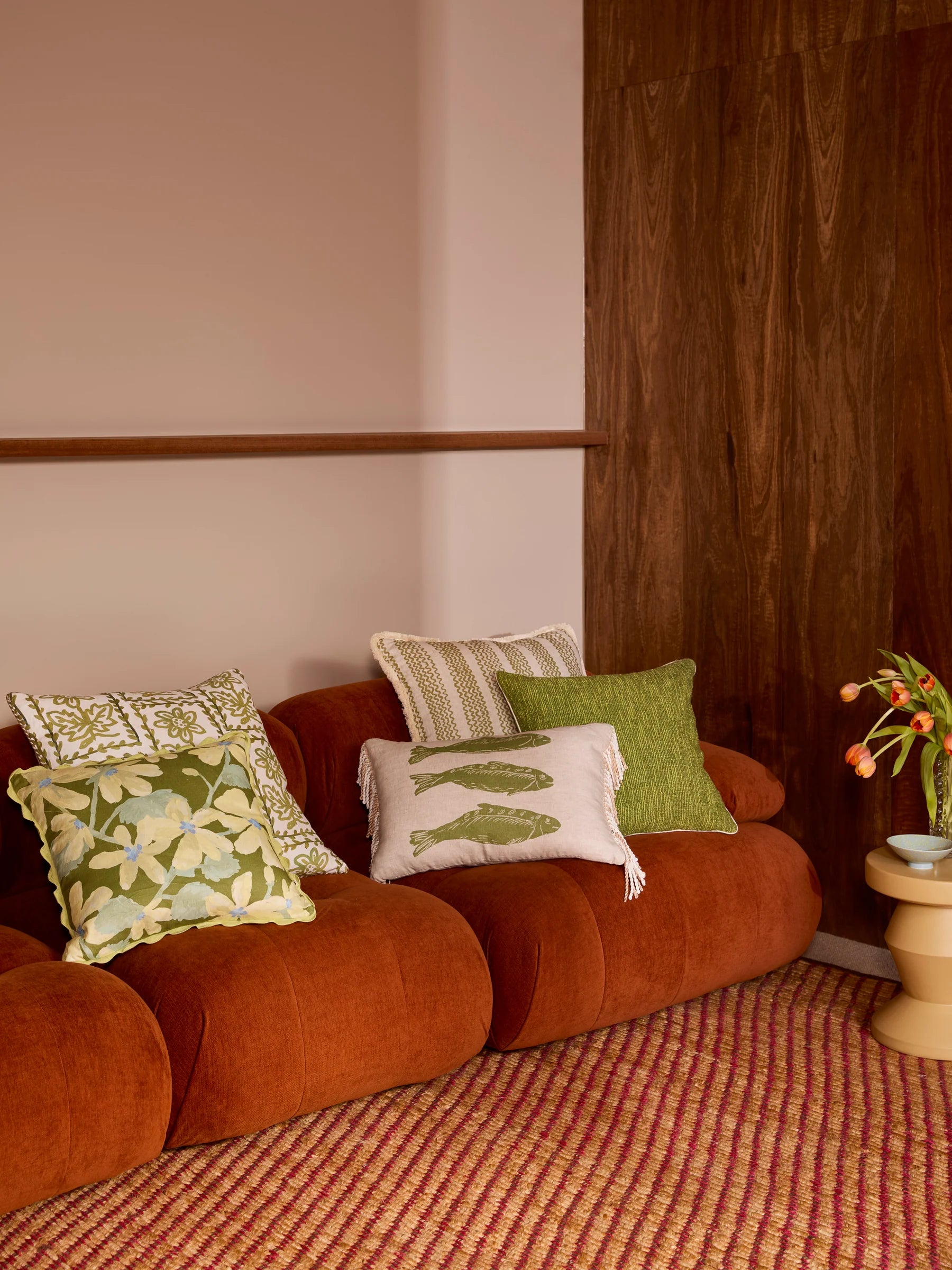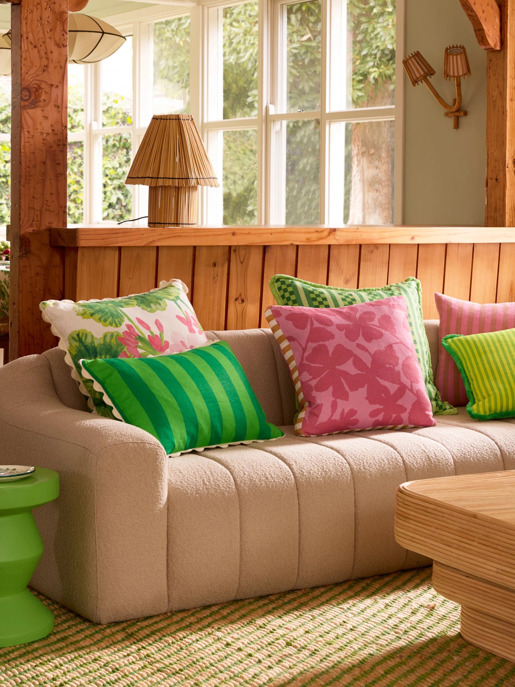 Handwoven jute meets bold pink or green accents in this fresh take on a classic weave. Durable, earthy, and artful - perfect for adding a soft burst of colour underfoot.