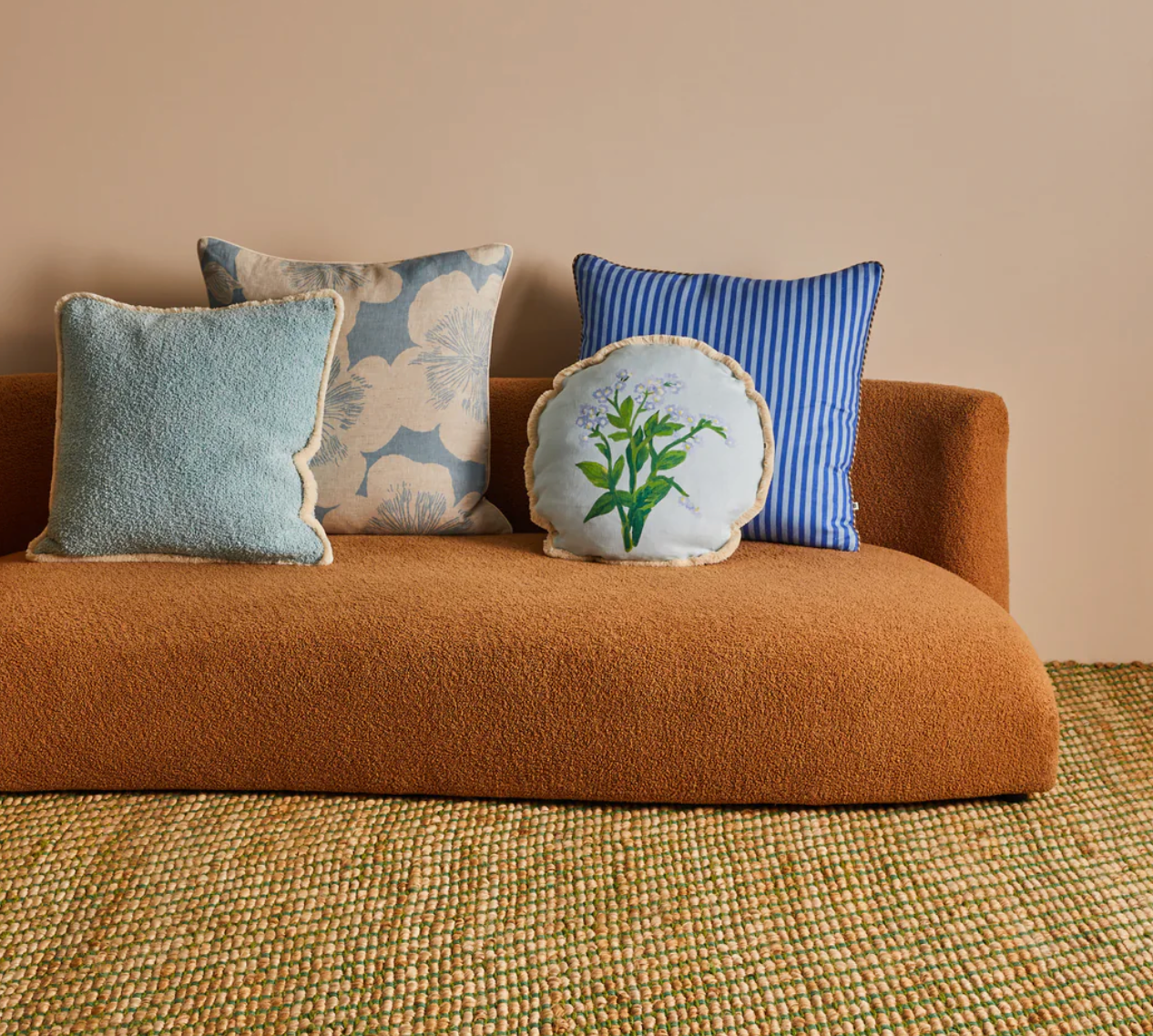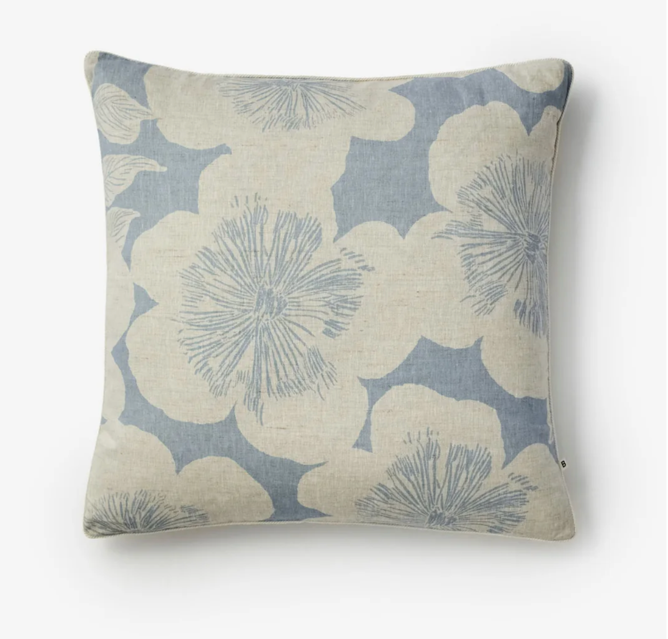 Soft and sculptural, this blue floral linen cushion offers quiet detail and subtle character. Great on it's own or as a complement to other B&N cushions