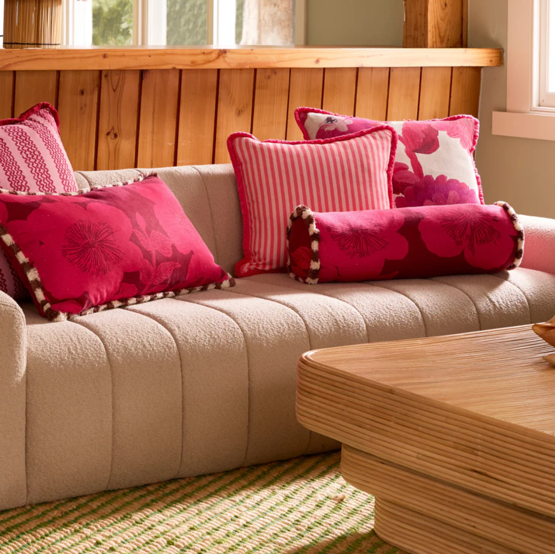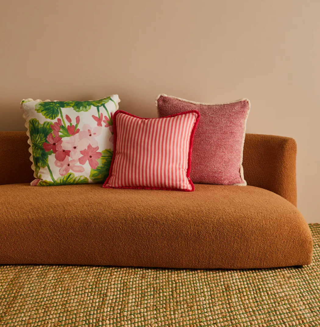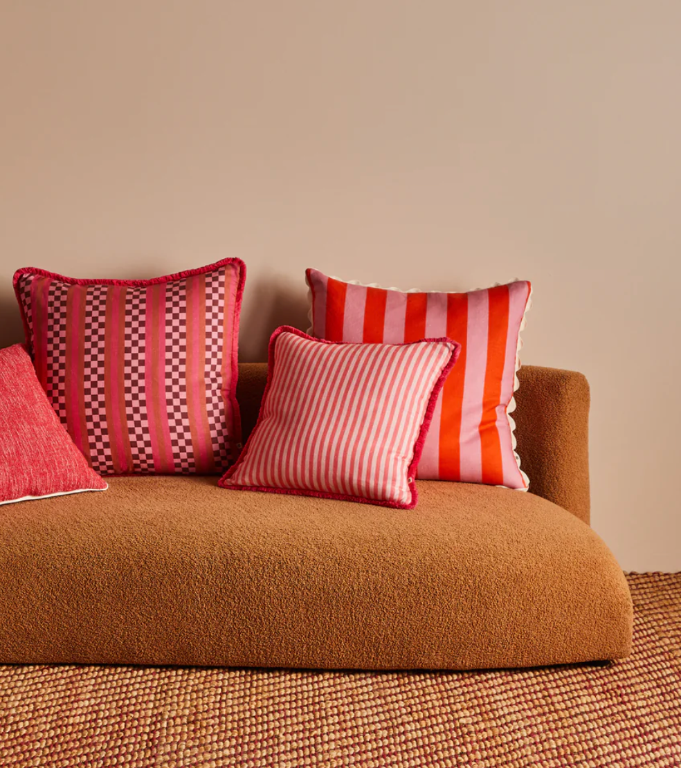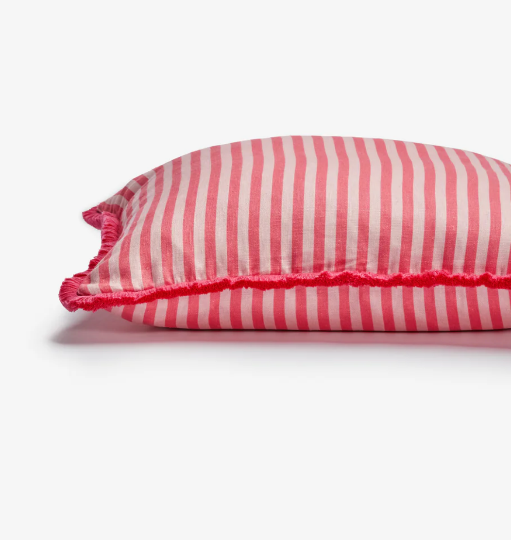 This rose pink linen cushion features our Pinstripe design — a retro-inspired stripe reimagined in fine lines and playful colour. A lively accent that brings rhythm and personality to any space.