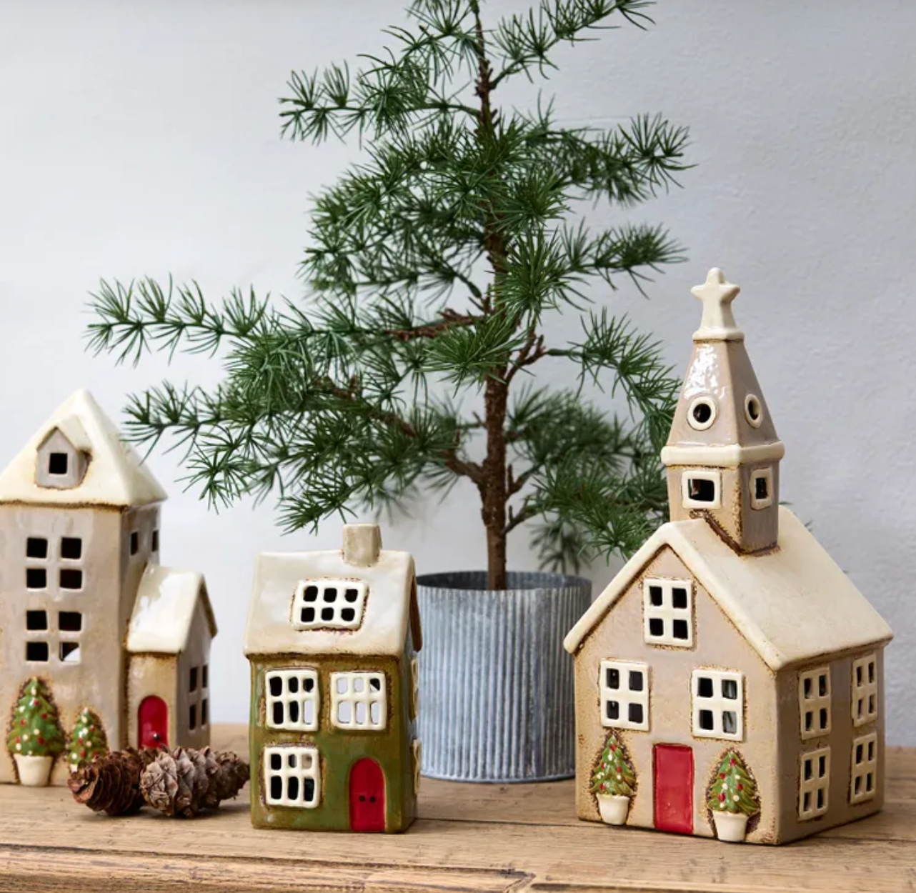 Inspired by the English countryside, each hand painted ceramic Tea Light House I a collectible treasure. Crafted with rustic roofs, intricate windows and twinkling charm. Perfect for adding warmth and glow to your festive home.