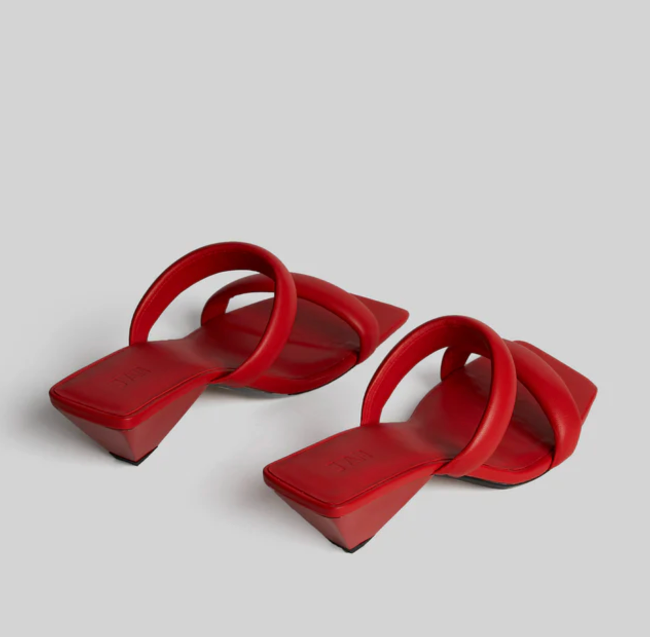 The Cody Heel in Cartier by JVAM is a refined, red, mid-heel sandal designed for day-to-night wear. It features two softly rounded straps that sit securely across the foot and a geometric block heel that adds sculptural structure without sacrificing comfort. A square toe keeps the look modern, clean and confident. Perfect for spring and summer occasions, work events or evenings out. Style it with wide-leg trousers, bias-cut skirts or a relaxed suit.