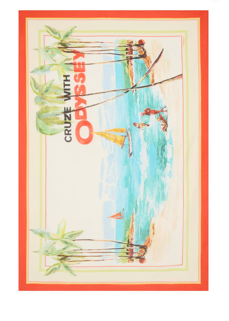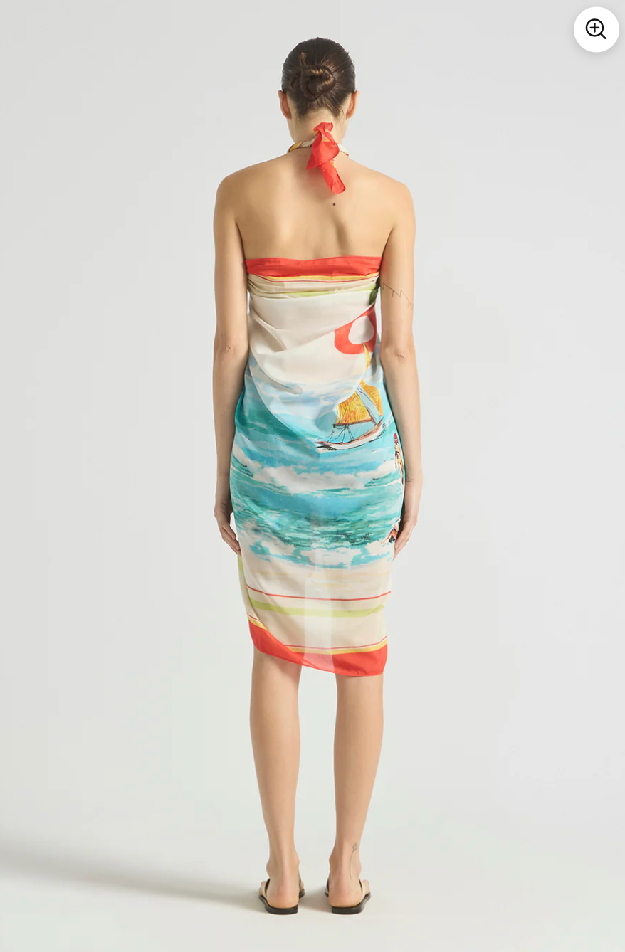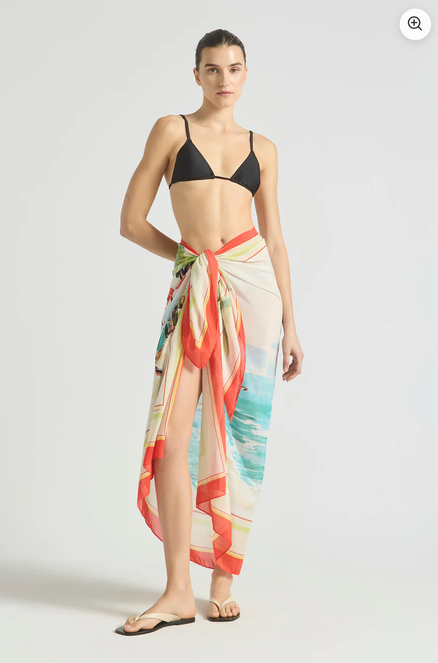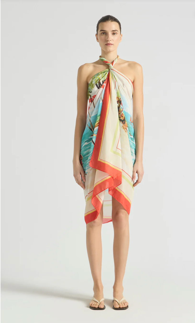 Light and effortless, this Cruze Pareo in Sea Salt is crafted from soft lightweight cotton silk and features an exclusive in-house print hand-drawn by our founder of a nostalgic coastal scene of sailboats and sea spray in shades of turquoise, coral, and sand.