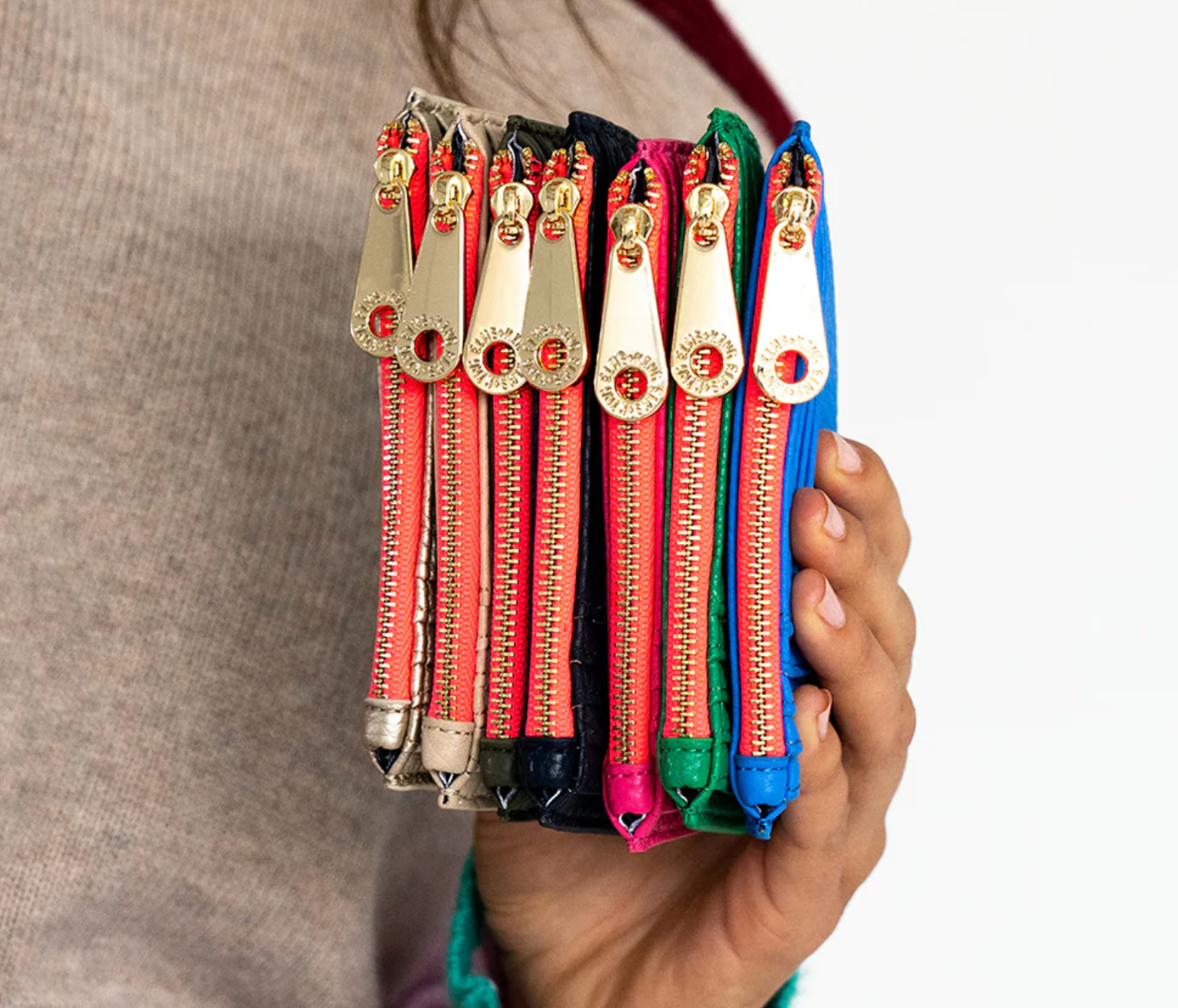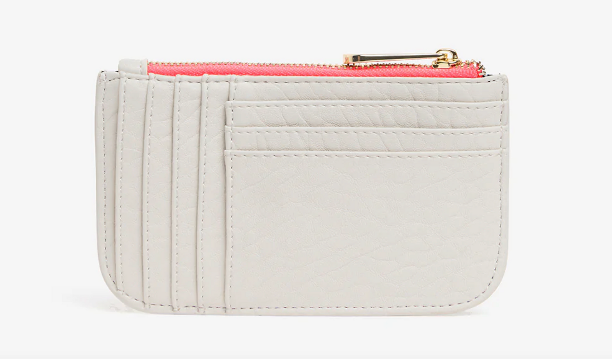 The Elms+King Centro Wallet is made from recycled premium polyurethane, with a slim line construction. The wallet features a top zipper closure, centre pocket and 8 rear mounted card slots.