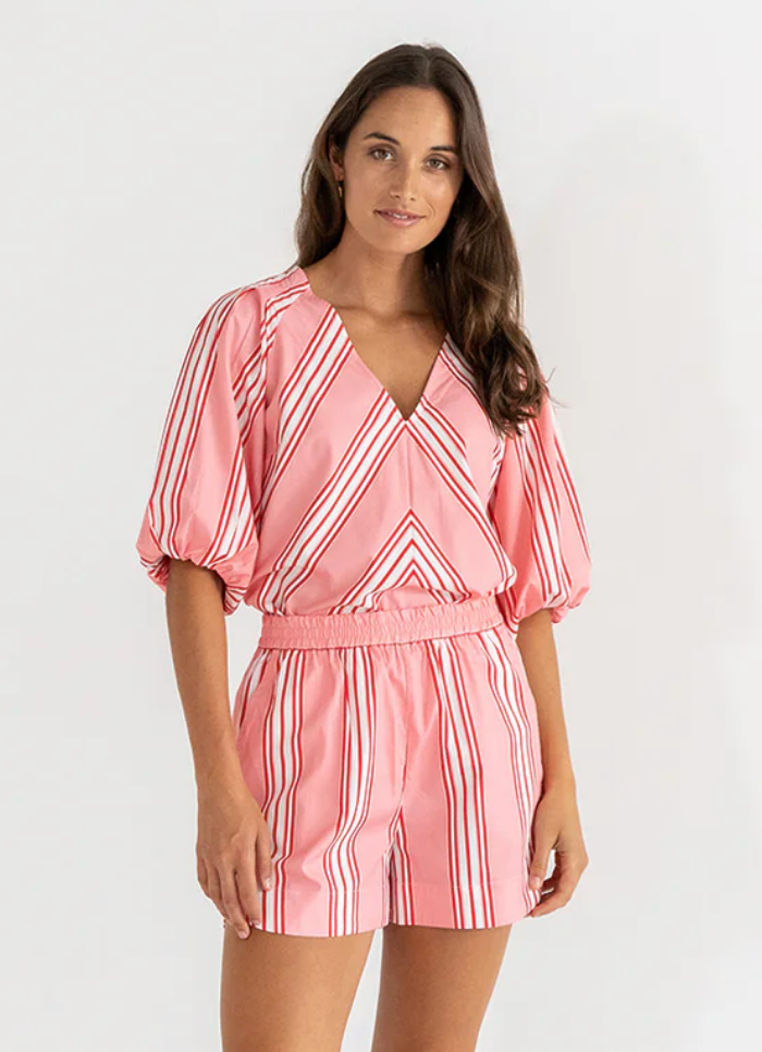 The Sicily Short by Elms+King is an elastic waist pull on short. Featuring side pockets, the short is cut with slightly more length at the back and has a wide hem band finished in a scoop, that flatters and elongates the leg. • Cotton poplin