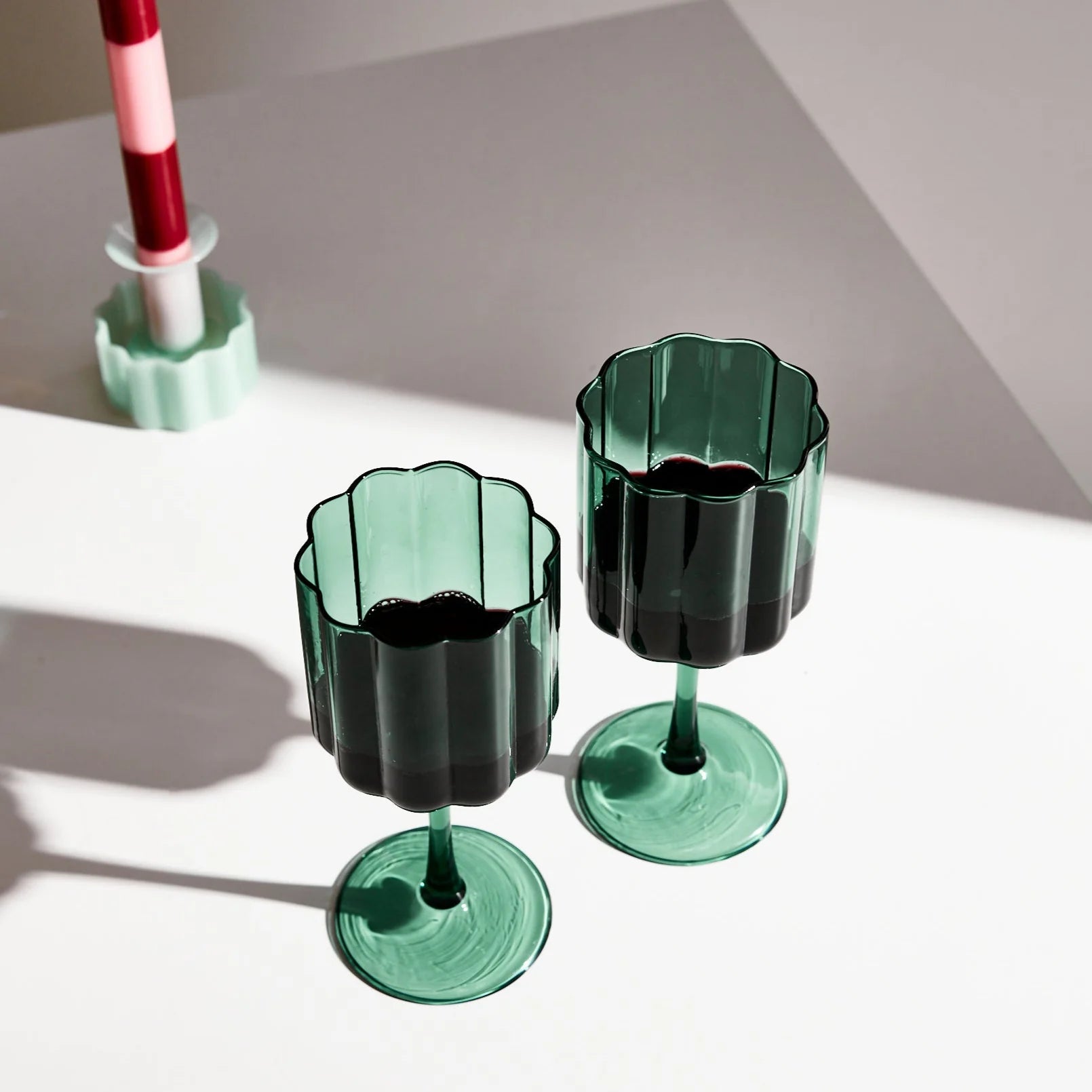 Our Wave Wine Glasses come in sets of 2 and are made from high-quality borosilicate glass.