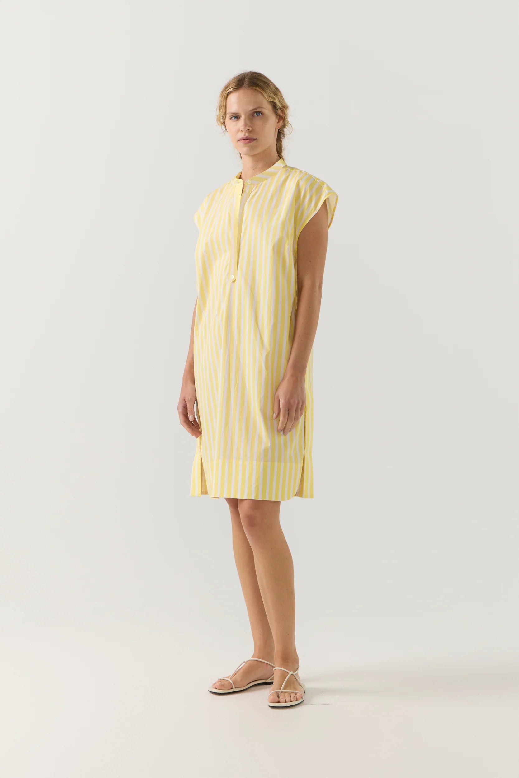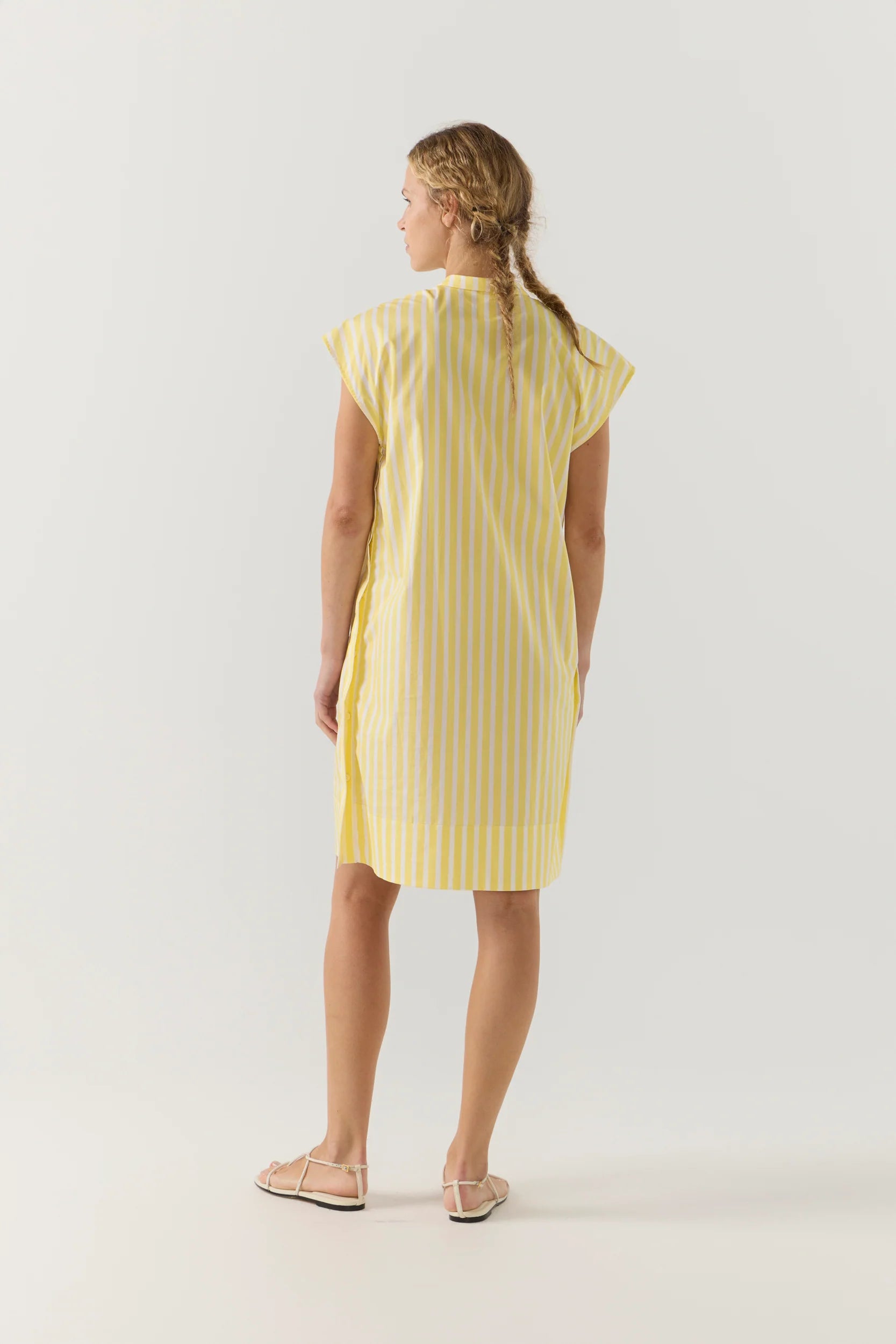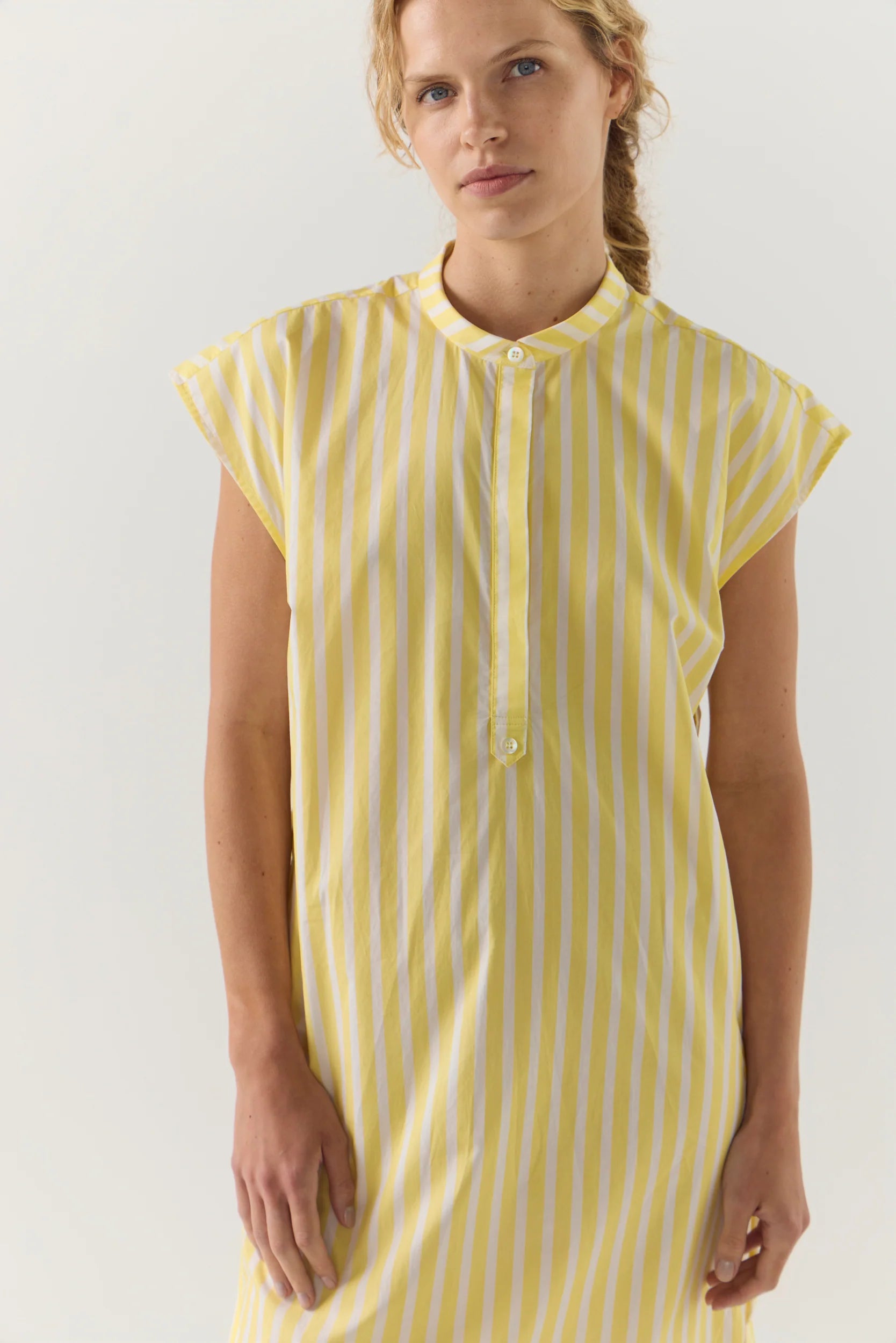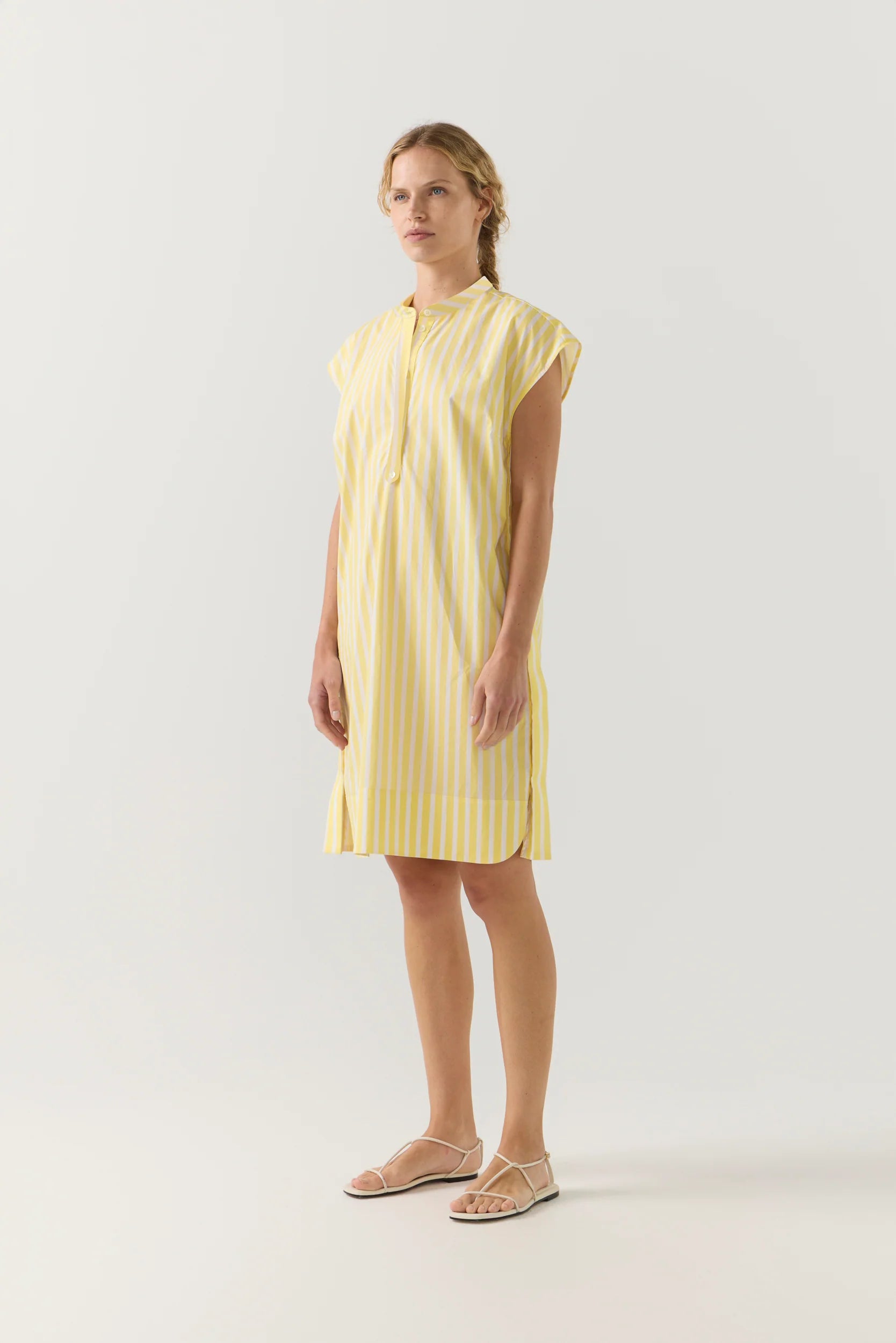 A minimal exploration of proportion and silhouette, the Gia Dress embraces a sculptural sensibility. Crafted in crisp cotton poplin, this mini dress features a batwing sleeve and a deep hemline that curves subtly at the front. A concealed side placket and straight back hem add architectural clarity, while side seam splits enhance ease of movement. A versatile piece that balances structure with lightness.