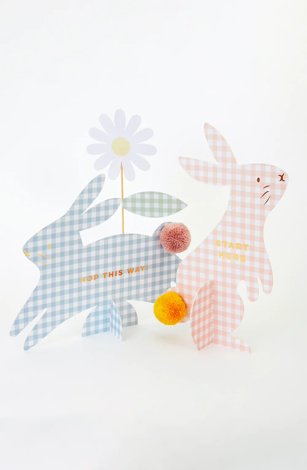A fabulous way to decorate your garden and give the kids lots of fun with this delightful gingham bunny egg hunt kit