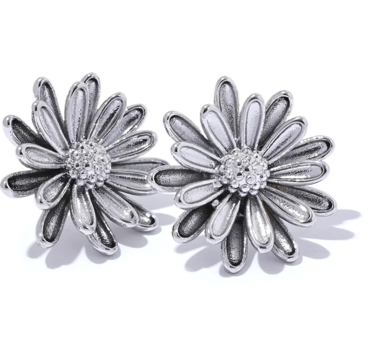 Get ready to add some sparkle to your everyday look with Daisy in silver! These are the perfect size for everyday wear, measuring 2.4cm. Made from stainless steel, they're great for sensitive ears. Say goodbye to boring earrings and hello to stylish comfort!