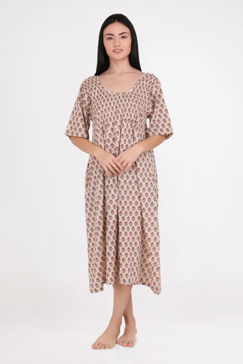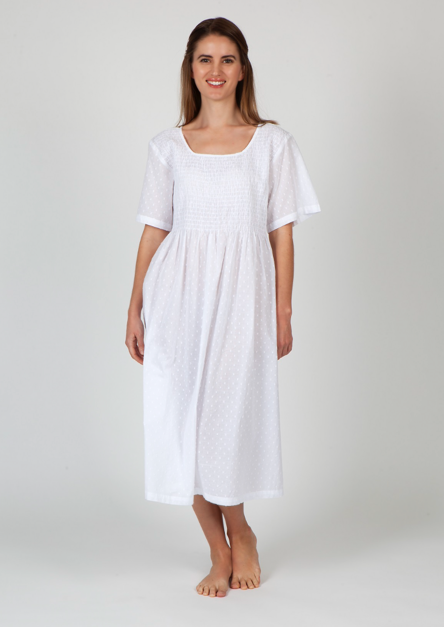 Love this super lightweight Cotton Night Gown with shirred bodice. If you like coverage and comfort this is your kind of nightie.