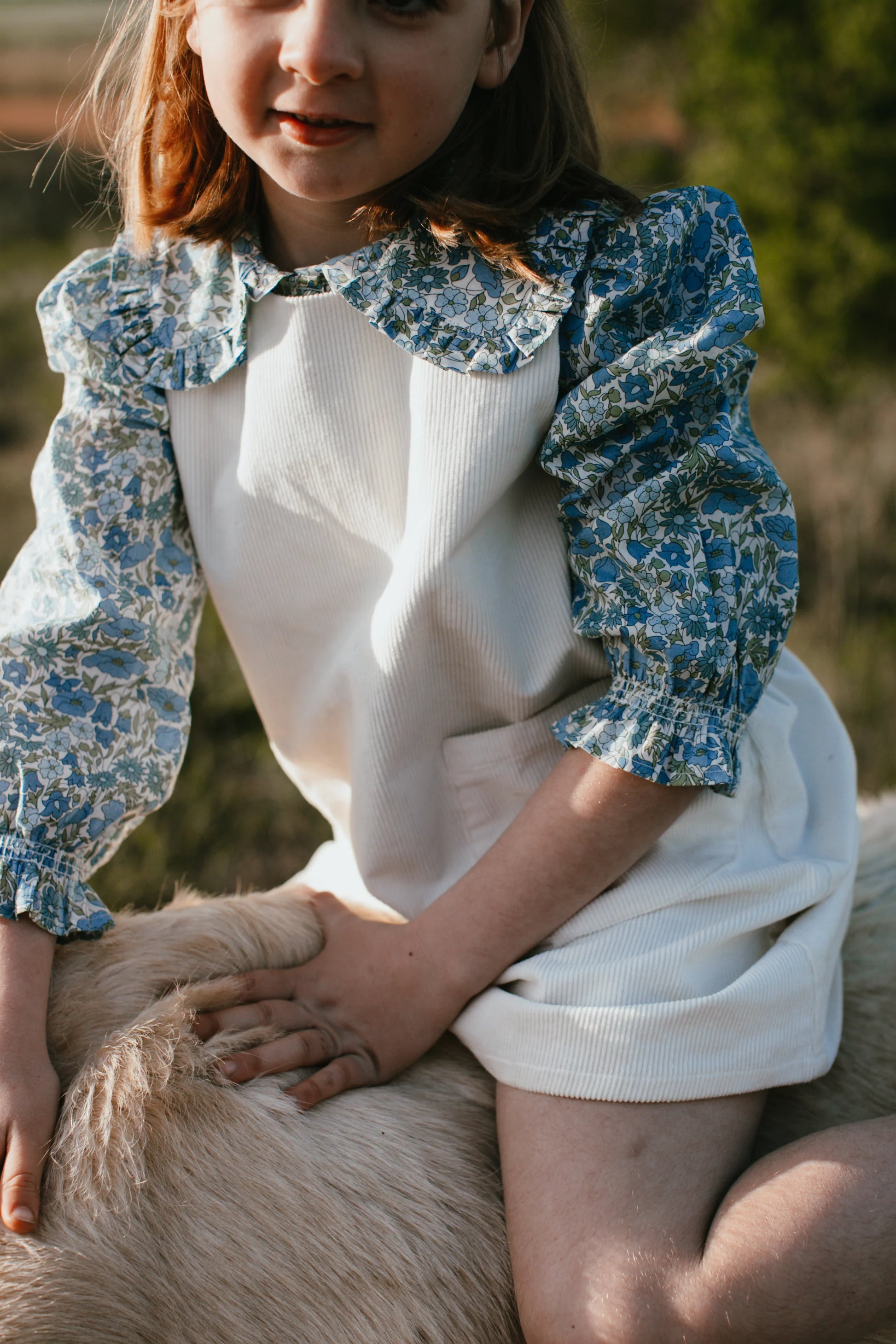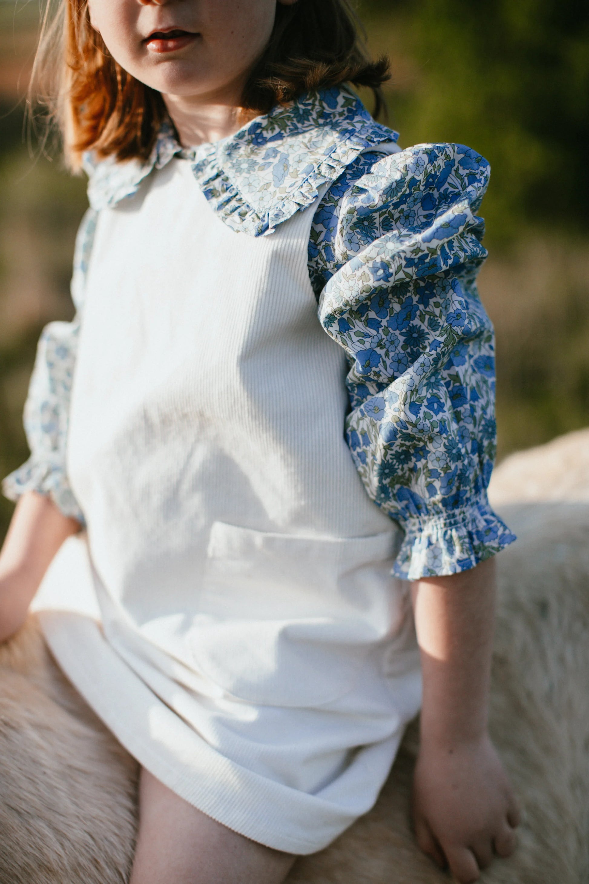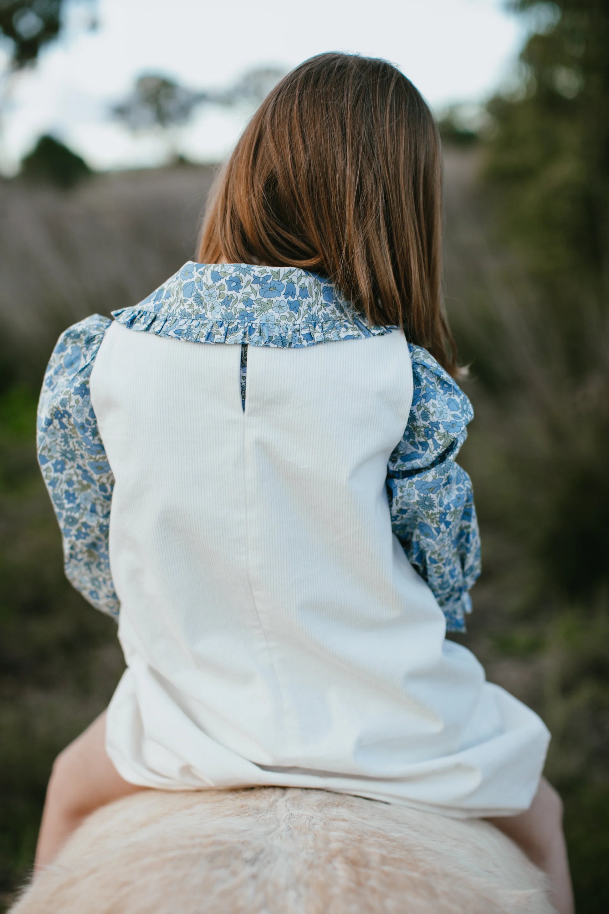 Our dreamy Lovey Pinafore in a deliciously soft , milk coloured baby corduroy might just be the most romantic and versatile piece you will own.