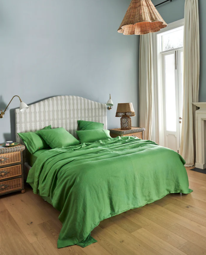 Crafted from luxurious 100% French flax linen, this Green Tea linen boasts a soothing hue reminiscent of creamy green tea matcha, enveloping your bedroom in a sense of serenity and renewal. Pair with our delightful range of printed, patterned, or plain bedding to curate your own idyllic sanctuary. Whether you're unwinding after a long day or starting your morning refreshed, this quilt cover beckons you to take a moment and bask in the comforts of home.