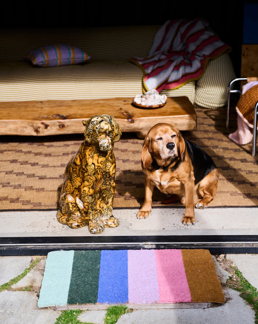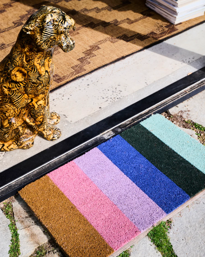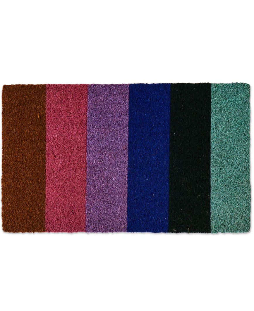 The Happy Stripe Coir Door Mat features a chunky vertical stripe in a rainbow of colours. Made from recycled coconut husks, our printed door mats sure are eye-catching. Why not have a bold front door step? There's no such thing as too much colour.