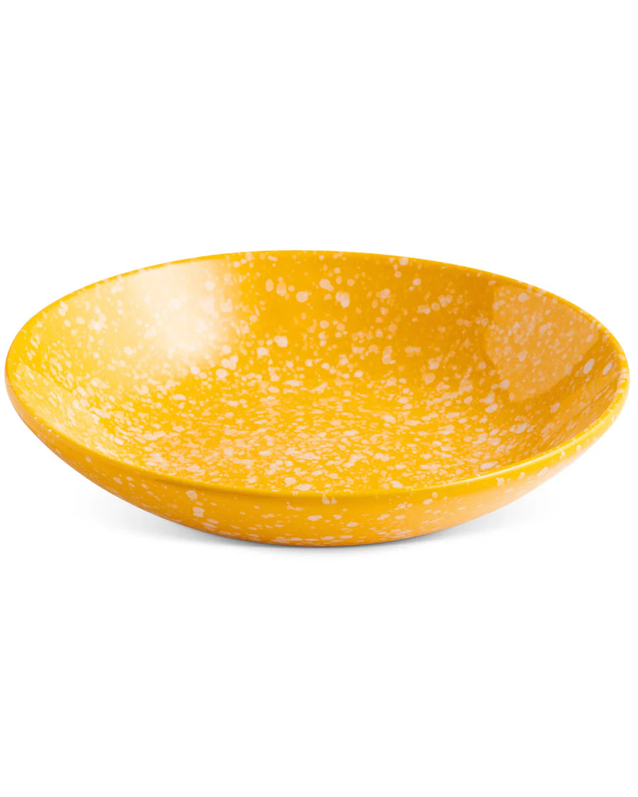 The Splat ceramic collection features a hand painted white splattered pattern on yolk yellow stoneware. Made by our mates and renowned ceramic masters Robert Gordon, these quality ceramics are a versatile pair, great for all kinds of delicious dishes and hearty home cooked meals.