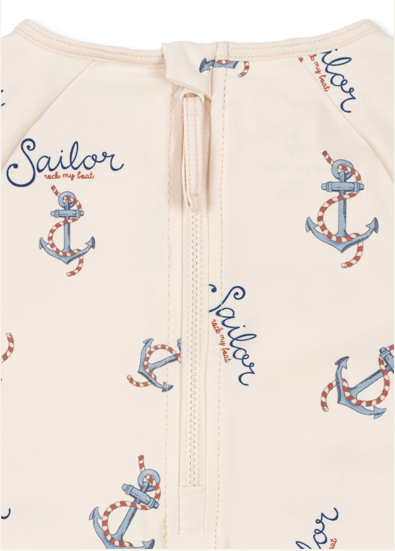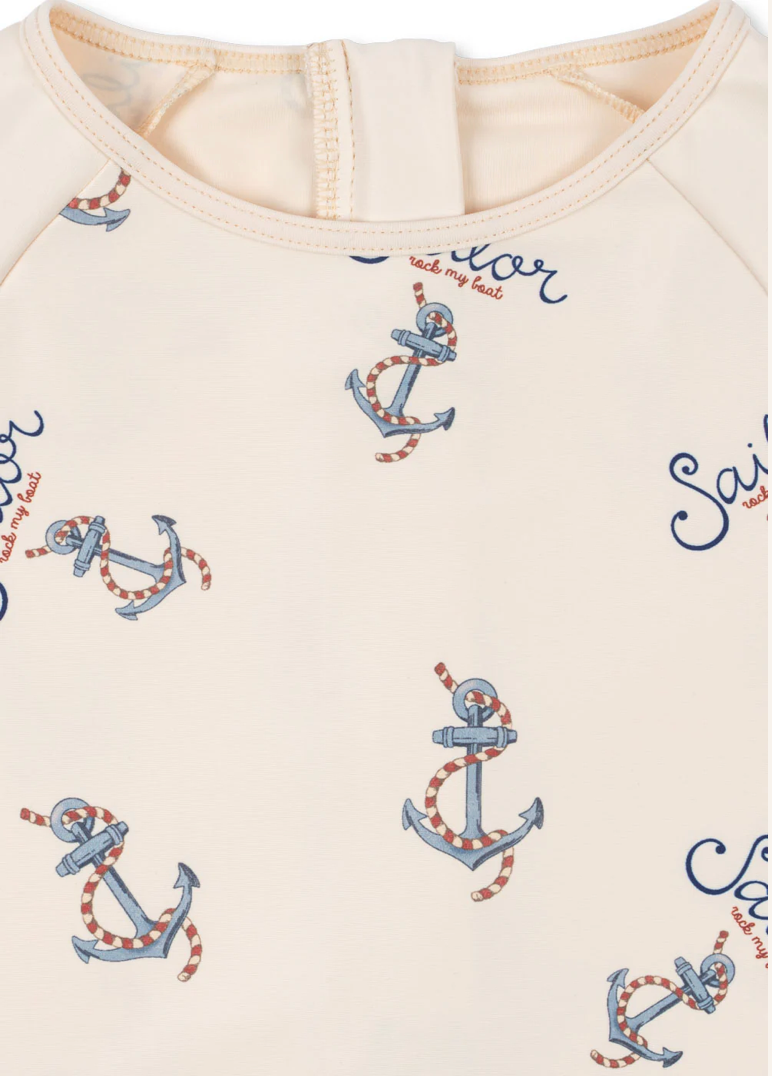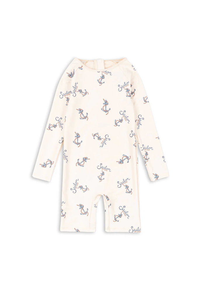 Swim onesie designed with long sleeves and frill details. The swim onesie offers protection against the sun’s UV rays with the highest ultraviolet protection factor, UPF 50+