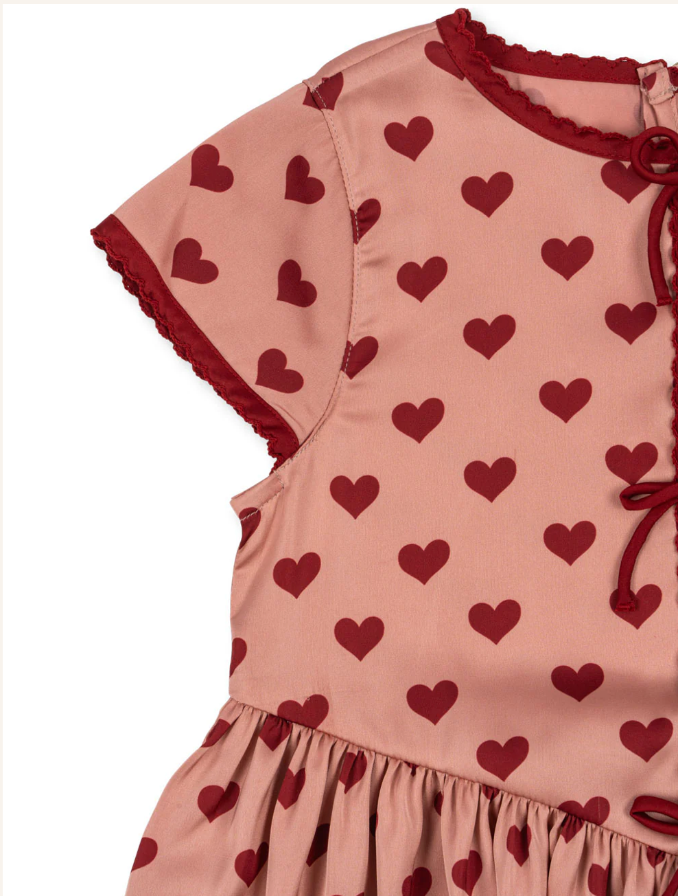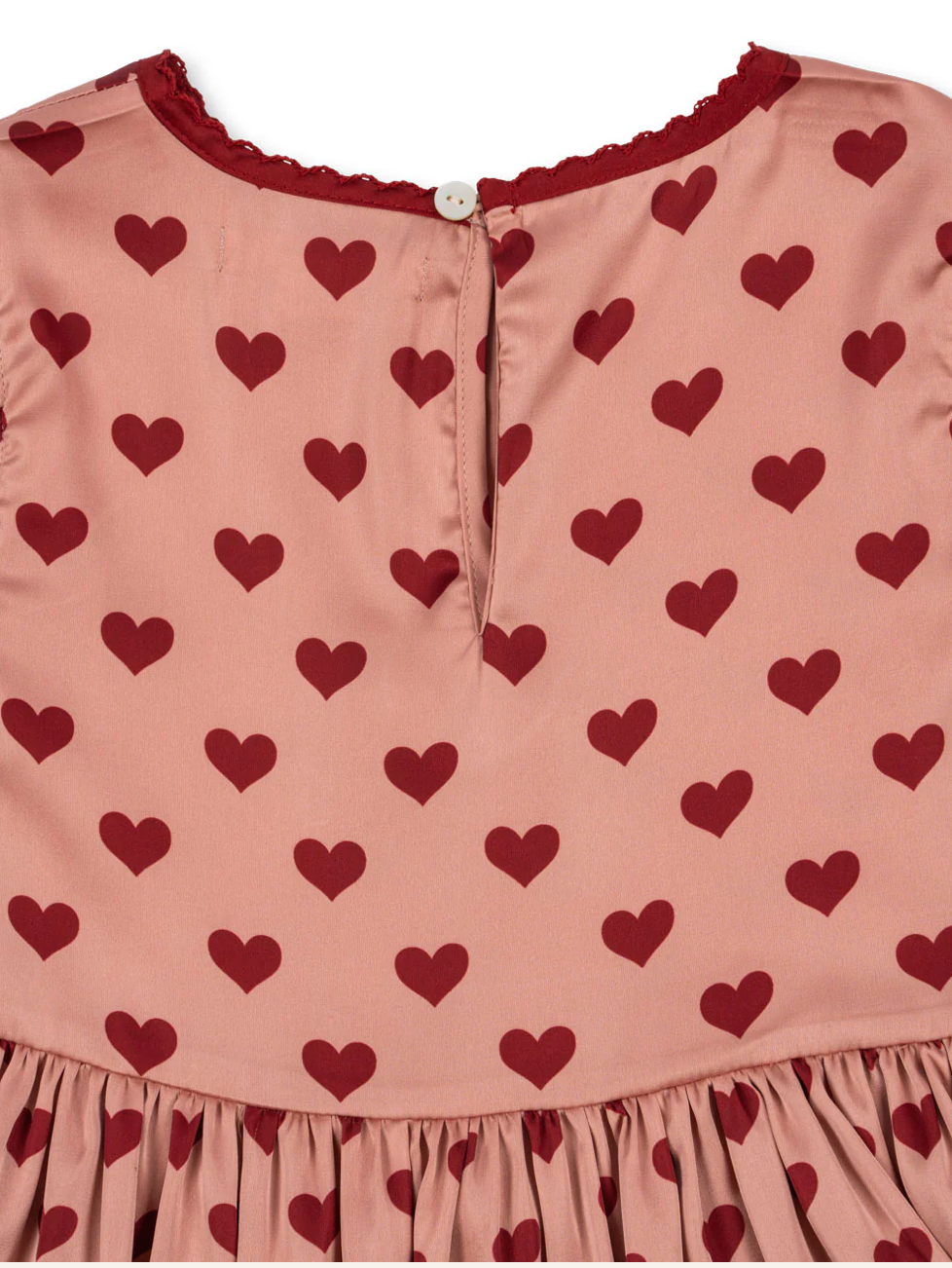 Soft dress in a shiny silky fabric with lace details along the hems. Made from 97% polyester and 3% elastane