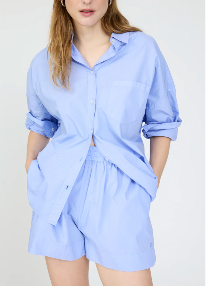 Our Signature Classic button-up shirt featuring customised stripe detail. Crafted from 100% yarn-dyed cotton, this shirt exudes both style and comfort. Features a chest pocket and our signature drop shoulders, creating a slightly loose silhouette that is perfect for layering under cozy knitwear or pairing with your favourite Chiara shorts.