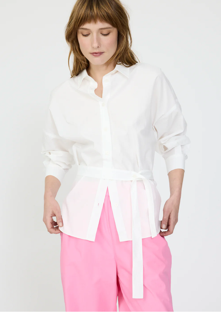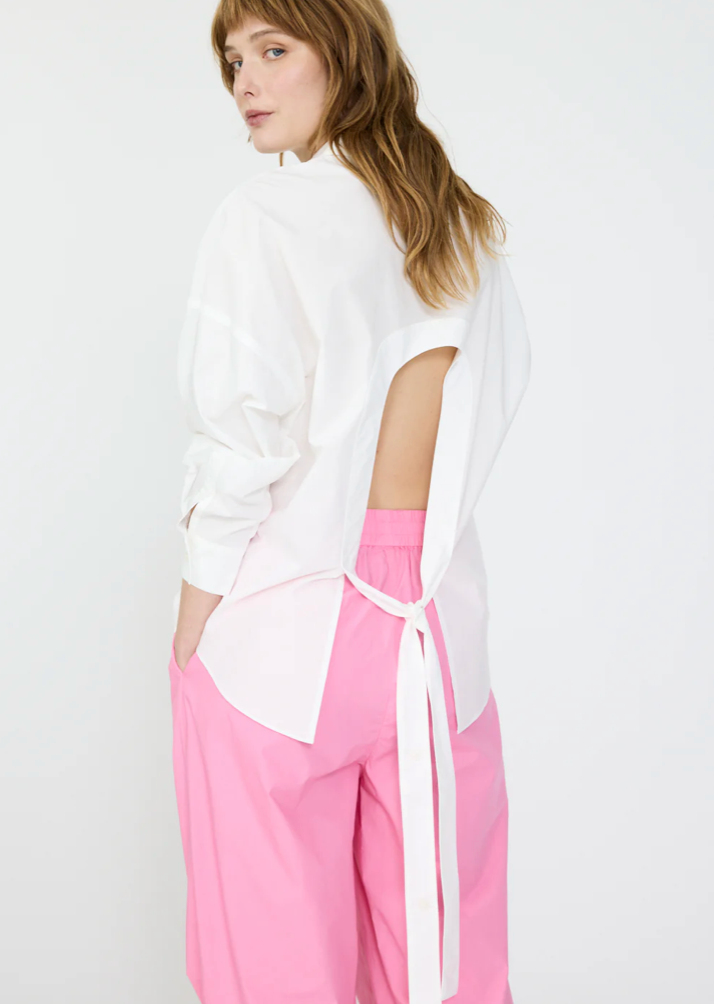 All the effortless ease of our signature Chiara Shirt, with an unexpected twist. The Chiara Backless Shirt features the same crisp silhouette and lightweight cotton poplin you know and love, now updated with an open back and adjustable tie detail. Designed to be styled your way, layered, tucked, or worn solo, it’s a statement piece that still feels classic.