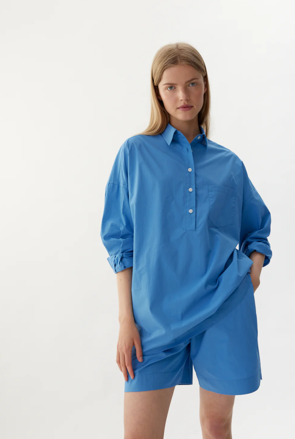 The Chiara Shorts are made from 100% cotton-poplin with a comfortable elasticated waistband. They're designed with loose legs and side slip pockets. Pair them with a tee or create a set with the matching Chiara shirt.