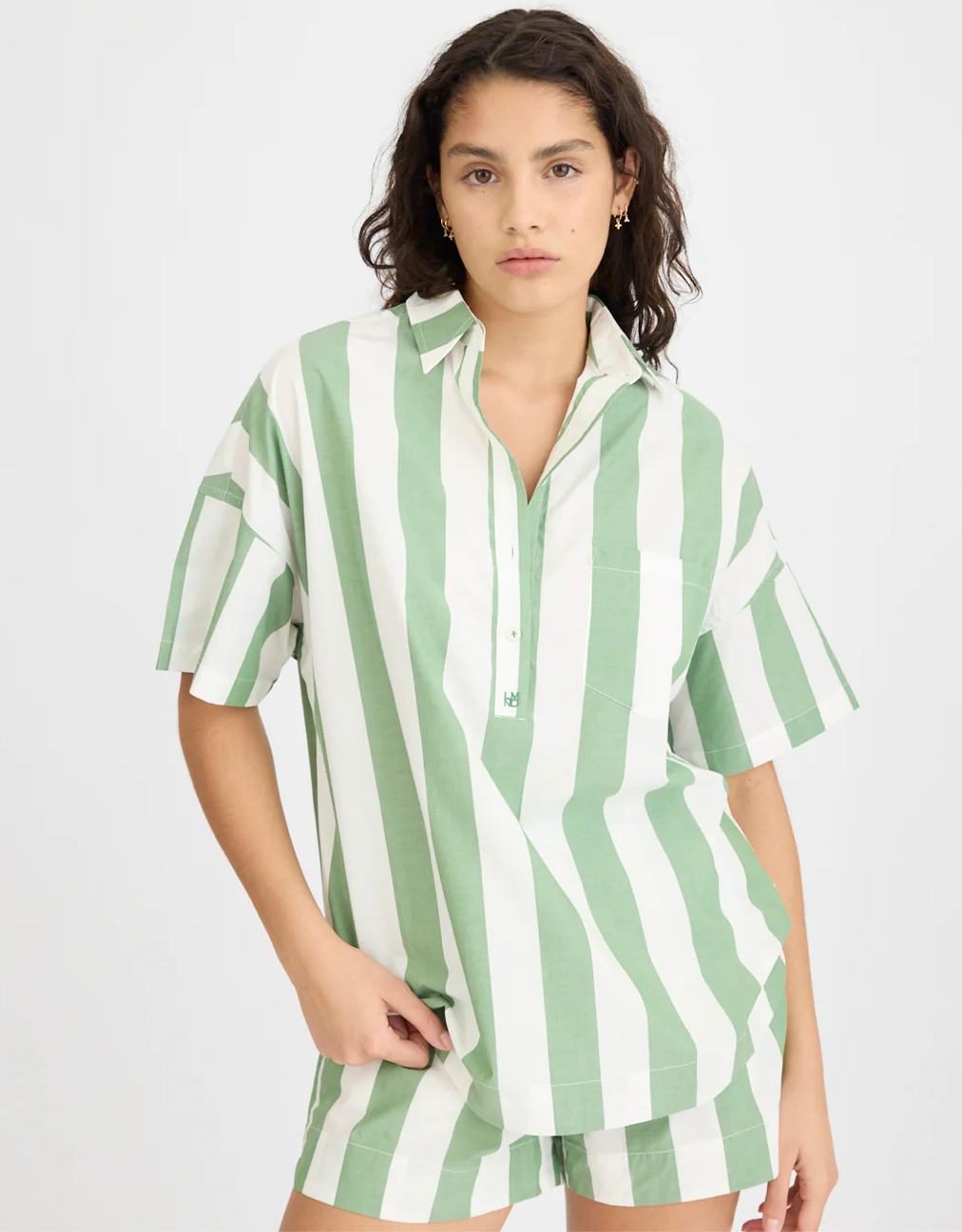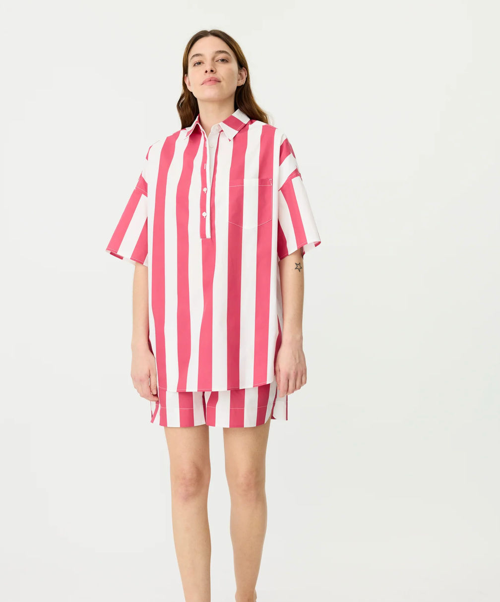This shirt exudes both effortless style and timeless appeal. We are still mad about matching sets so pair with the matching short.  Relaxed fit, buy your normal size ors size down.