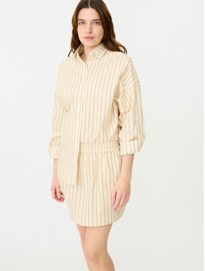 This shirt exudes both effortless style and timeless appeal. We are still mad about matching sets so pair with the matching skirt. Relaxed fit, buy your normal size.