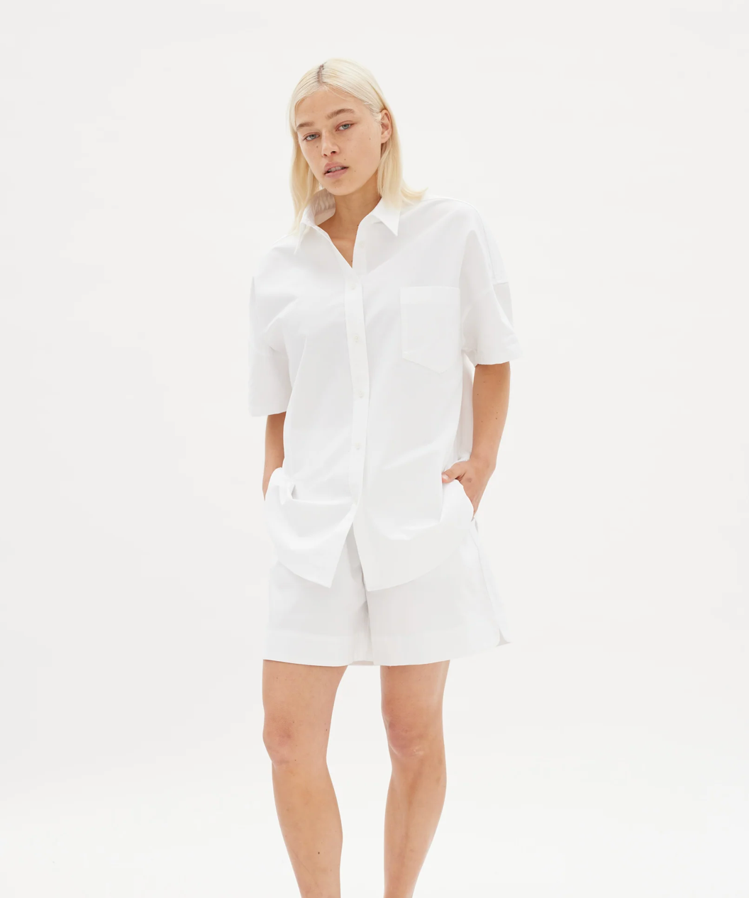 The Oxford Shorts are made from 100% cotton-poplin with a comfortable elasticated waistband. They're designed with loose legs and side slip pockets. Pair them with a tee or create a set with the matching Oxford Short Sleeve shirt.
