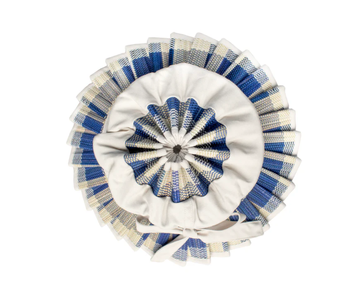 The Mayfair is specifically designed to collapse and fold like origami, due to the sunray pleats, for ease of travel. Optional ties are provided at the base of each hat to be used for anchoring during breezes