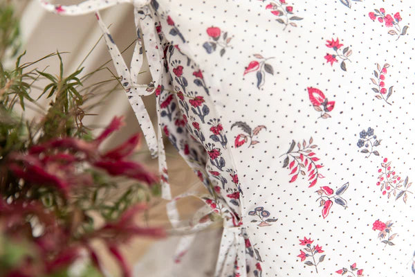 Printed on organic cotton, the Seabud print features a beautiful and intricate floral design with tie ends.