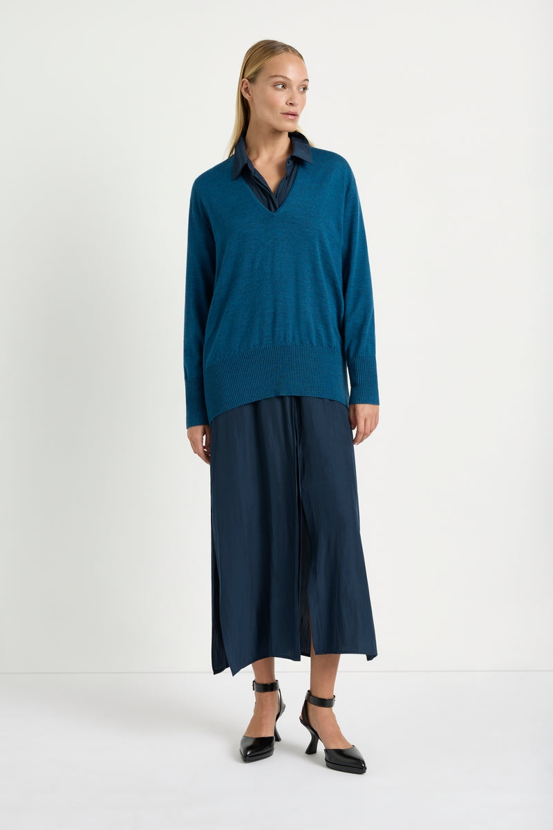 Knitted from sumptuously soft, featherweight Australian Merino Wool. It is my absolute favourite knitwear. So light yet so toasty warm and great layered. True to size, buy your normal size.