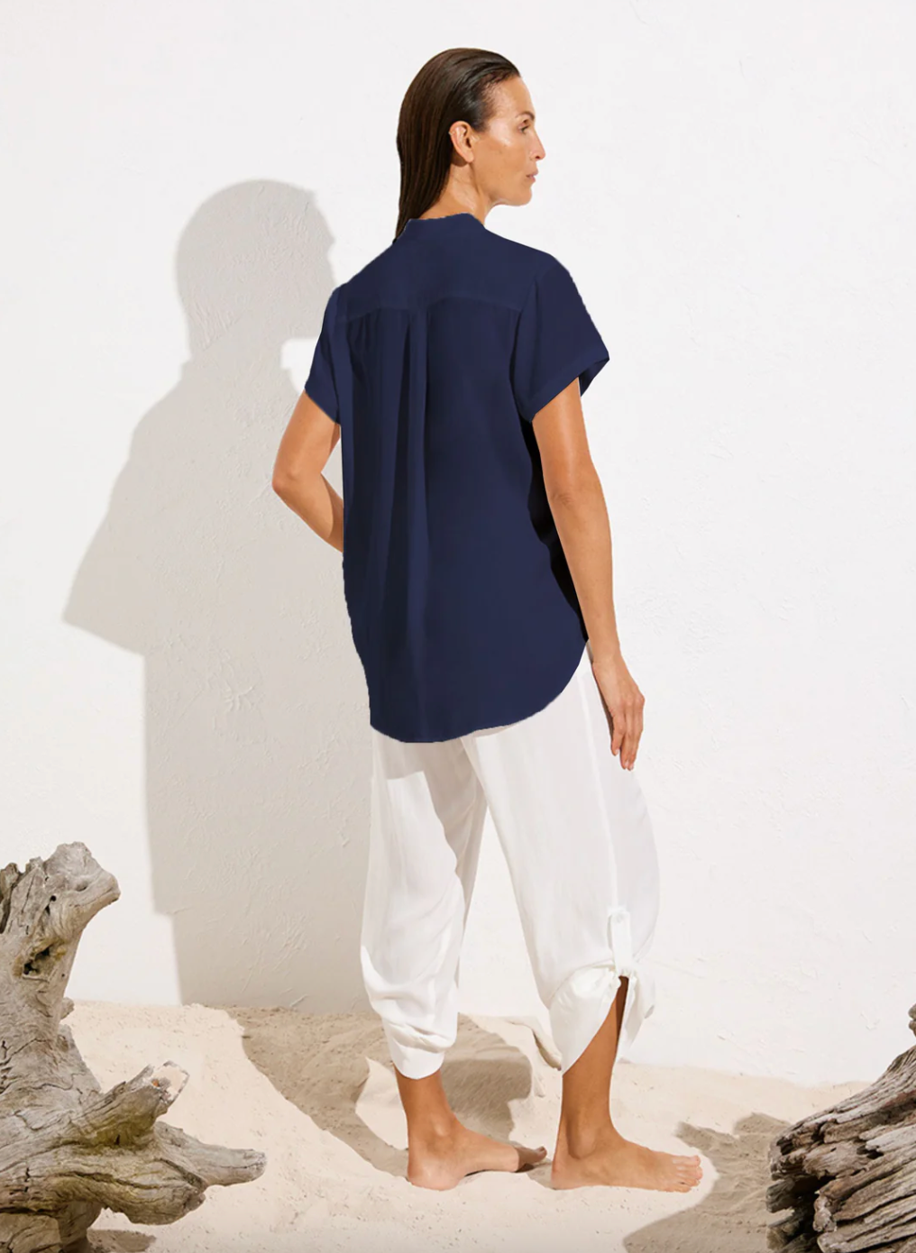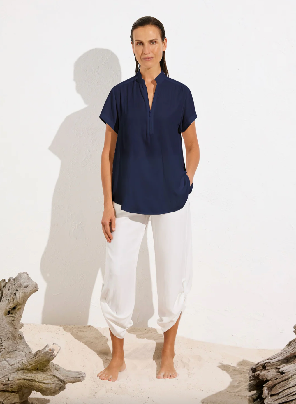 Crafted from Mela Purdie's Mache, featuring a relaxed fluidity & smooth lustre surface. The Zip Stand Shirt offers a classic shirt silhouette with a half zip opening through the collar stand.